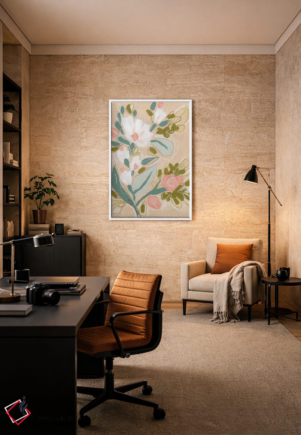 ساختار بوم گالری ایماژ طوری است که اثر روی دیوار «پرداختشده» و حرفهای دیده شود—نه پرزرقوبرقِ بیپایه؛ بلکه دقیق و خوشپرداخت. بافت ظریف کنواس کمک میکند حس اثر هنری را در نگاه نزدیک نگه میدارد بهخصوص وقتی نور موضعی ملایم داشته باشید. با قابپذیری، قاب مناسب مرز بصری تمیزتری به اثر میدهد و در چیدمانهای مدرن و مینیمال خیلی خوب مینشیند. این کیفیت برای دکورهای دقیقتر و پروژههای حرفهای خودش را بهتر نشان میدهد؛ در محیطهای کاری، این نظم بصری خیلی به چشم میآید.
