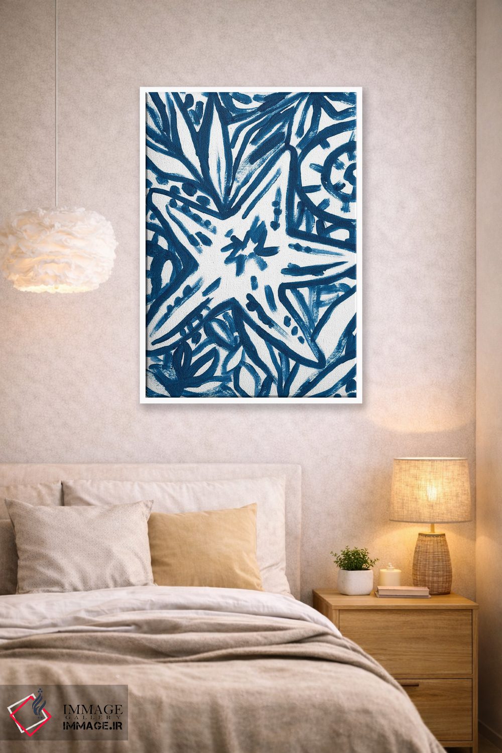 برای دکورهای صمیمی، «باتیک ساحل قلمموخورده ۳» اثرِ «جون اریکا وس» بافت و جزئیات را طوری نشان میدهد که نگاه میماند؛ برای نشیمنهای خانوادگی انتخابی خوشسلیقه است. به دیوار، قصه میدهد—اما قصهای آرام و شیک.
