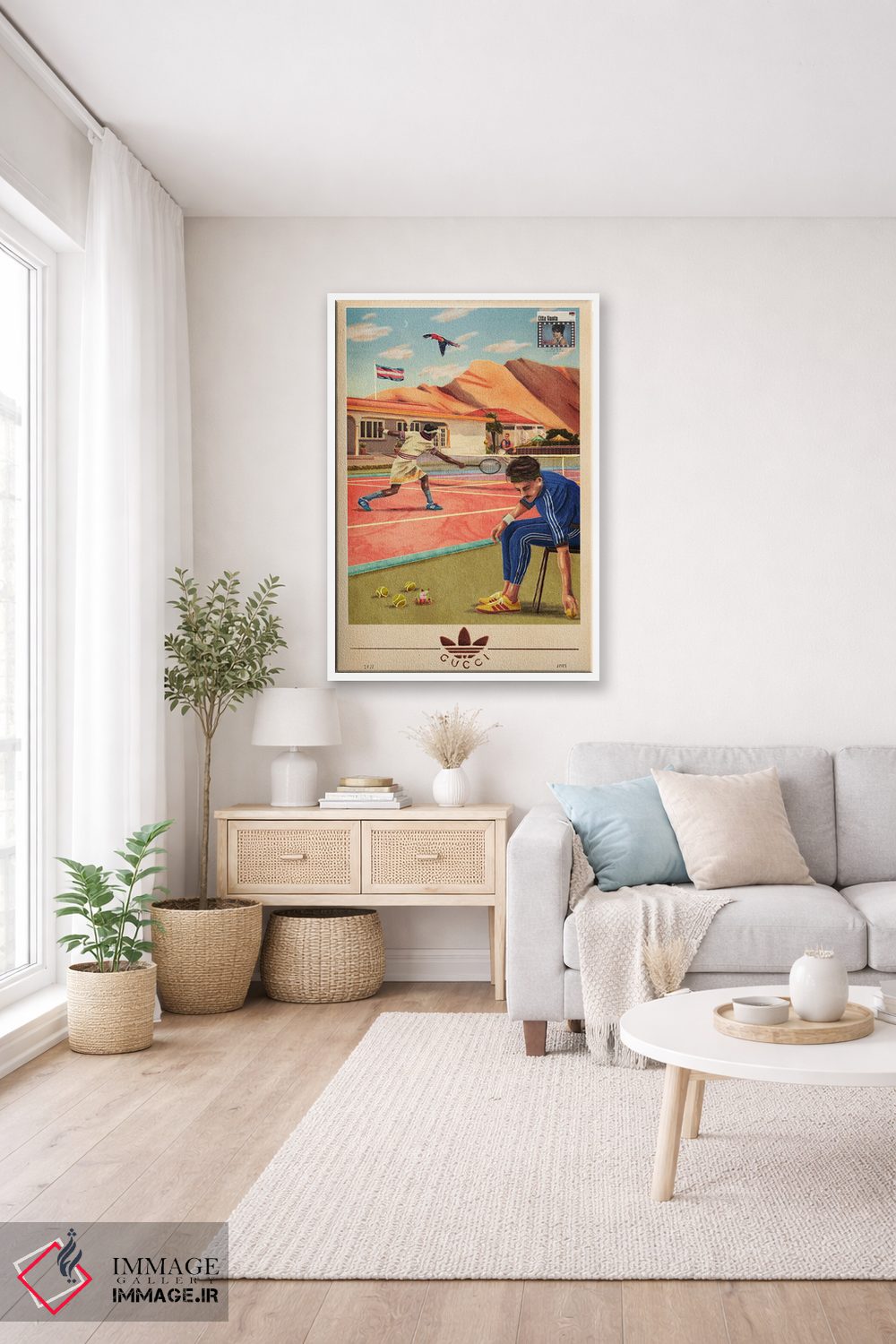 بوم گالری ایماژ نسخهی دکوراتیوِ سطحبالا از یک اثر هنری است؛ روی کنواس سفیدِ یکدست و بدون اسید با چاپ هنریِ دقیق (Giclée) برای گذارهای نرمتر و وضوح بالاتر با سیستم رنگ Epson UltraChrome HDR برای نیمسایههای نرمتر و سایههای جزئیتر، روی دیوار، کار یکدستتر و خوشکیفیتتر دیده میشود. اسمبل تمیز و آمادهی نصب؛ کشیدگی استاندارد روی کلاف و یراق مناسب.