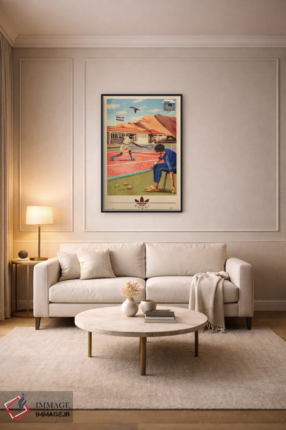 «متل گوچی (ارجاع به برند)» اثرِ «جیمی ادلر» در کنار مبلمان تیره یا روشن، خوب مینشیند؛ چون تاکیدش روی فرم و کیفیت بصری است.