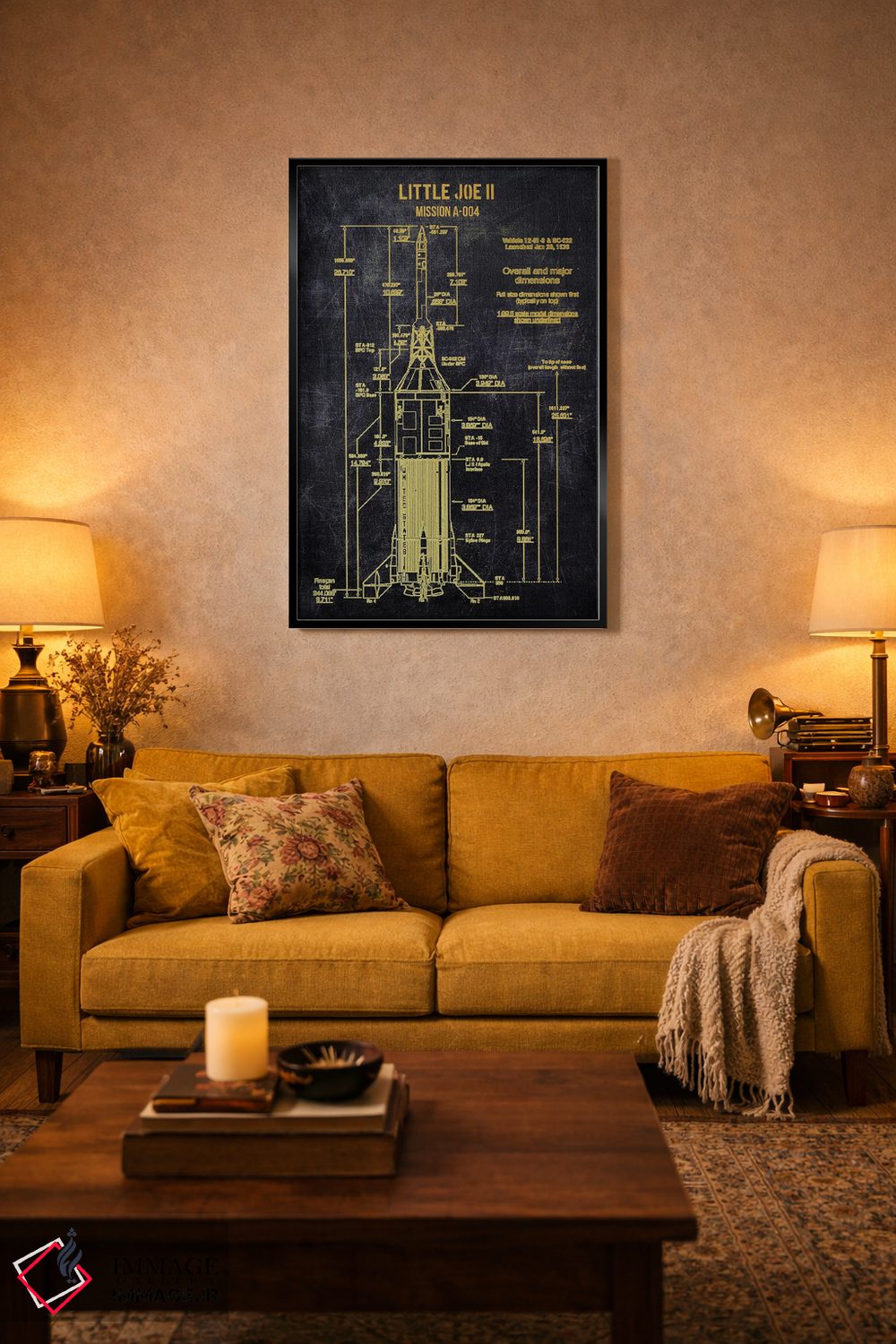 براساس پالت ترکیبی اثر، قاب تیک گرم (چوبی) پیشنهاد اول است و مشکی مات (فریم متوسط) مکمل. برای سفارشهای پروژهای با ابعاد و قابهای اختصاصی با ایماژ در تماس باشید.