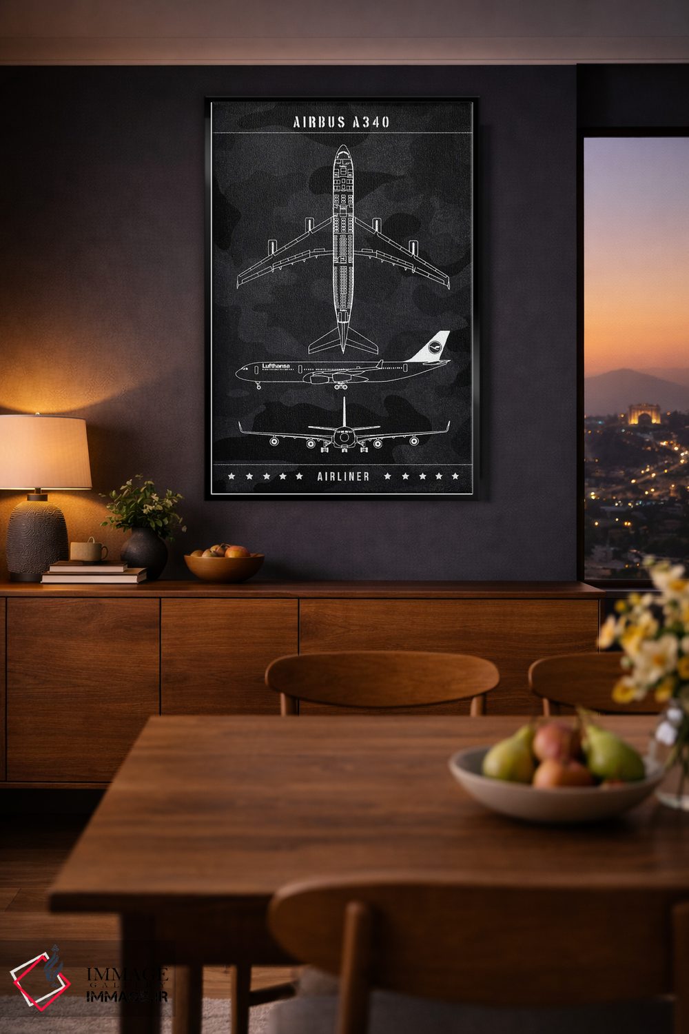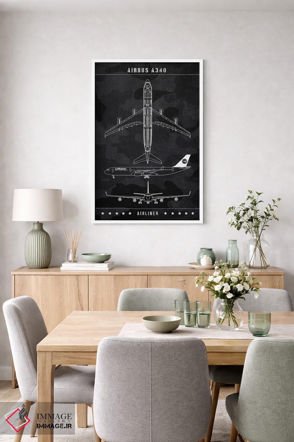 «ایرباس A340» اثرِ «جوزف فرناندو» با رویکرد هنری، یک انتخاب شیک و تمیز برای دیوارهایی است که دنبال نظم و کنتراست پُرانرژی.