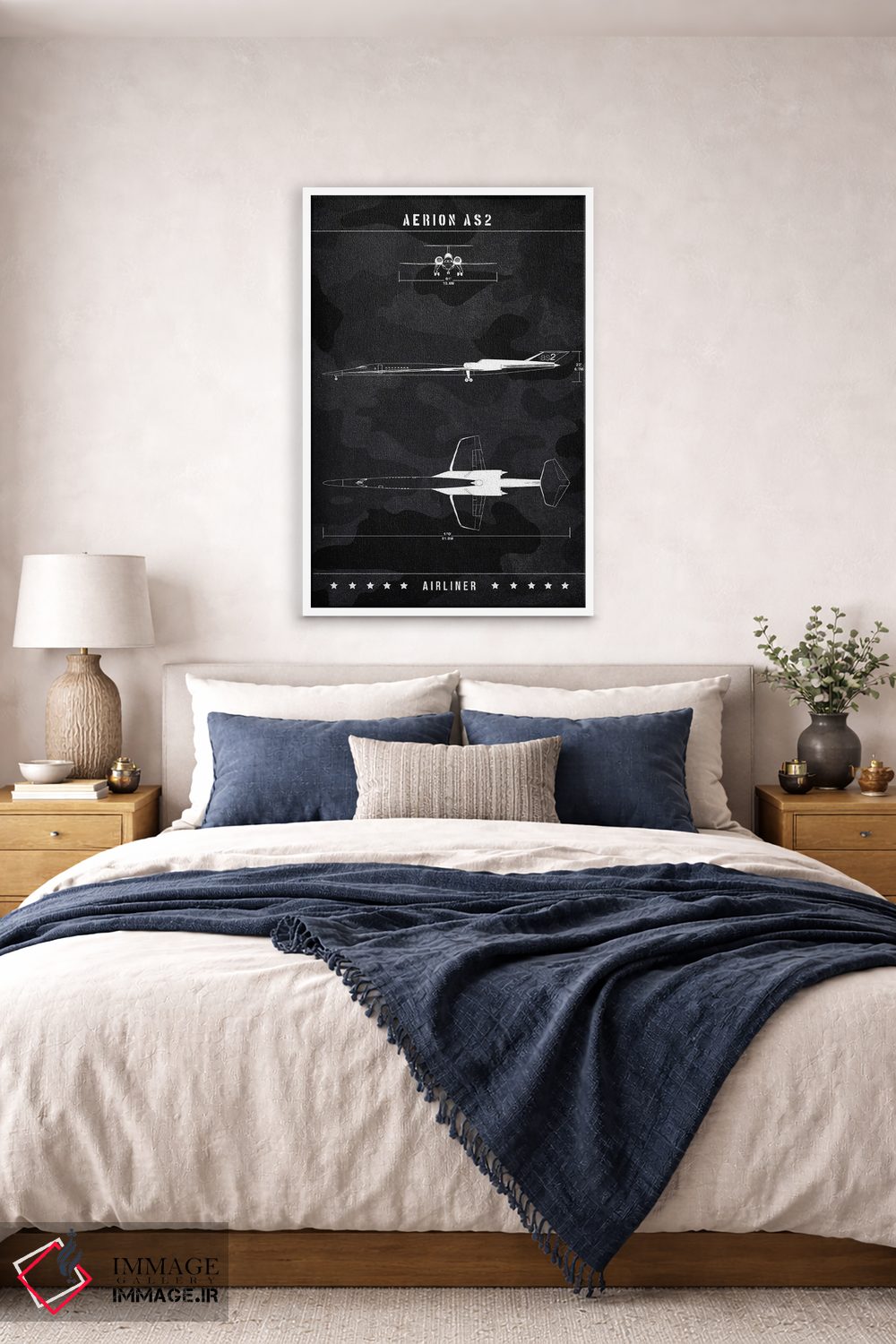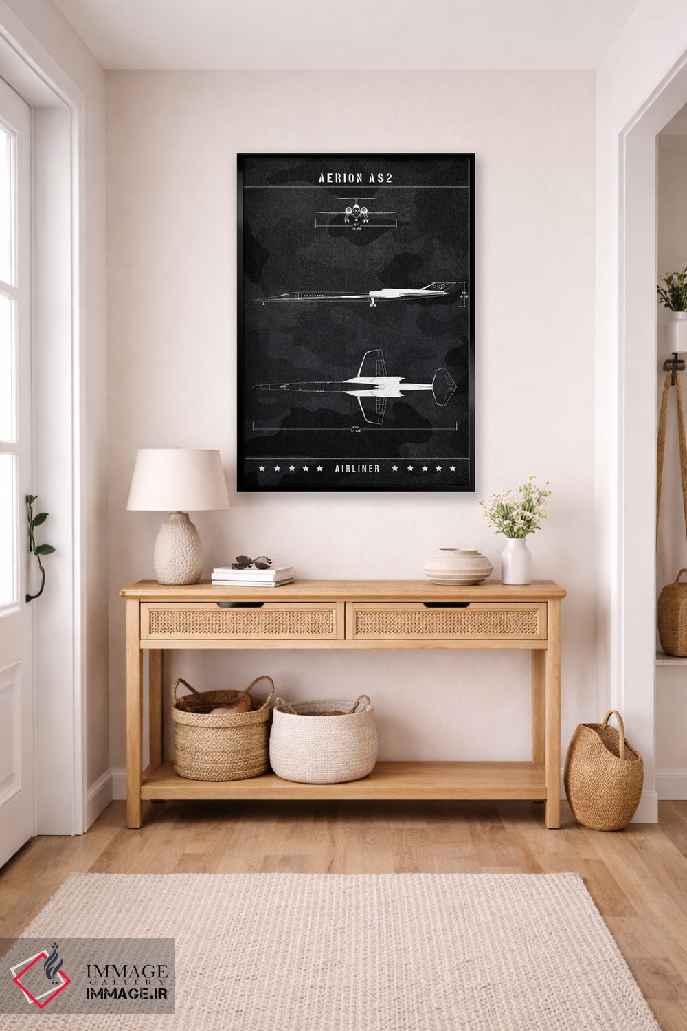 اگر دیوارِ راهرو یا گوشهی مطالعه نیاز به یک قاب خوشانرژی دارد، «آریون AS2 (هواپیمای جت تجاری سرعت بالا)» اثرِ «جوزف فرناندو» با تم این اثر گزینهی مناسبی است.