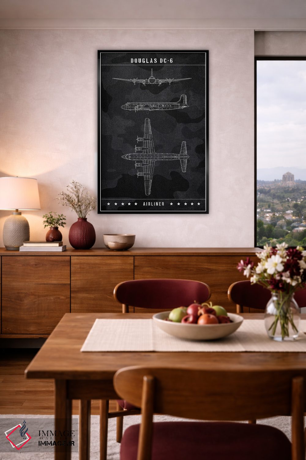 اگر پالت دکور شما خنثی است، هنری کمک میکند «داگلاس DC—6» اثرِ «جوزف فرناندو» با روایتی مینیمال و مرتب، نقطهٔ کانونی بسازد.