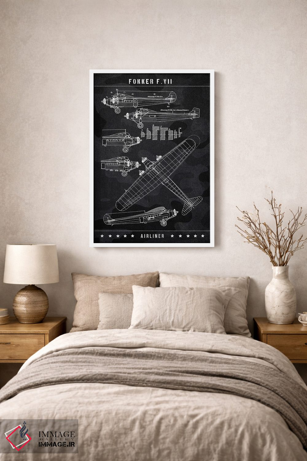 «فوکر (شرکت هواپیماسازی)» اثرِ «جوزف فرناندو» با رویکرد هنری، یک انتخاب شیک و تمیز برای دیوارهایی است که دنبال نظم و کنتراست پُرانرژی.