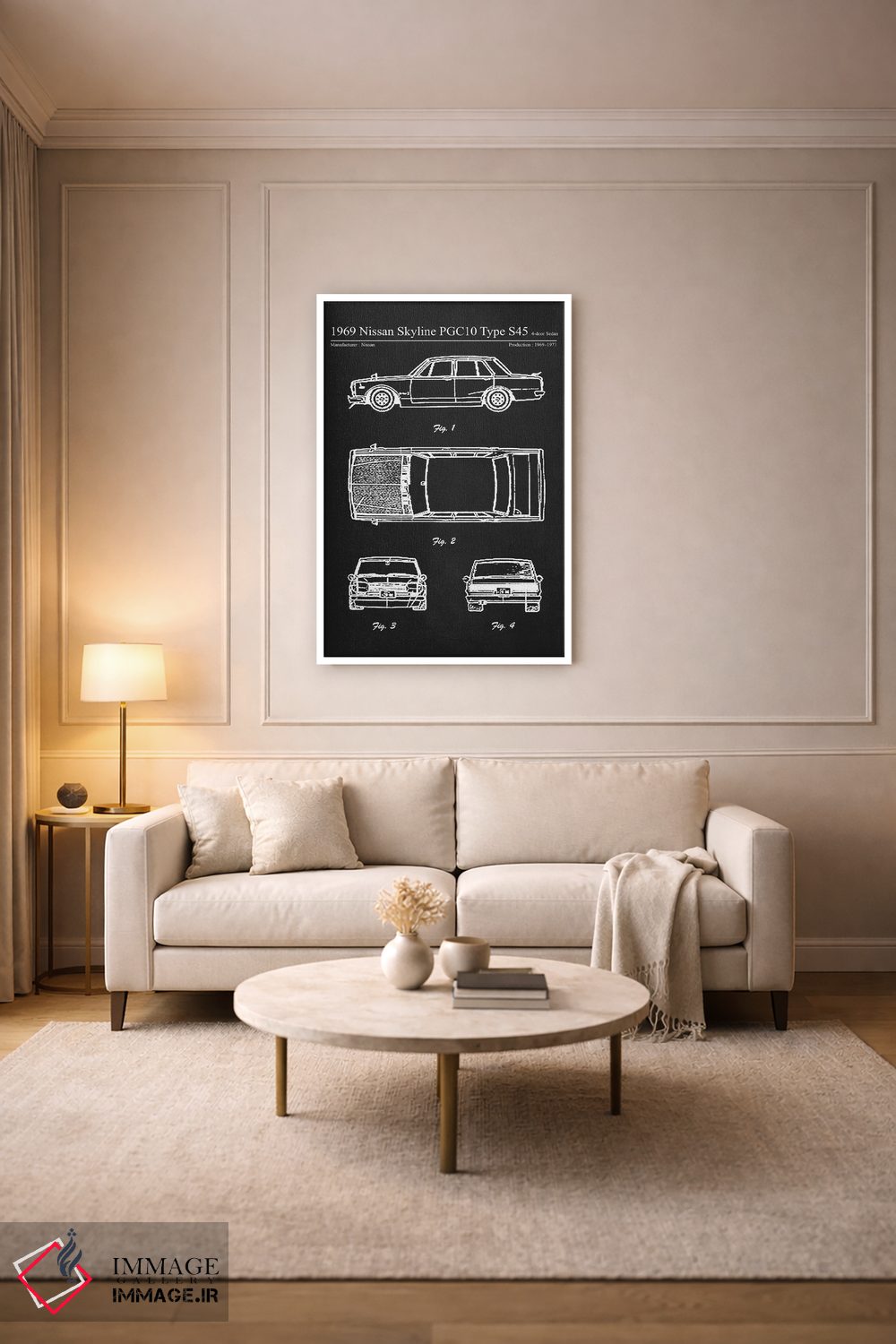 در هنری، سادگیِ سیاهوسفید همهچیز را روی فرم میبرد؛ «نیسان اسکایلاین PGC10 تایپ S45 چهار در مدل ۱۹۶۹» اثرِ «جوزف فرناندو» برای دکورهای مینیمال فوقالعاده مینشیند.