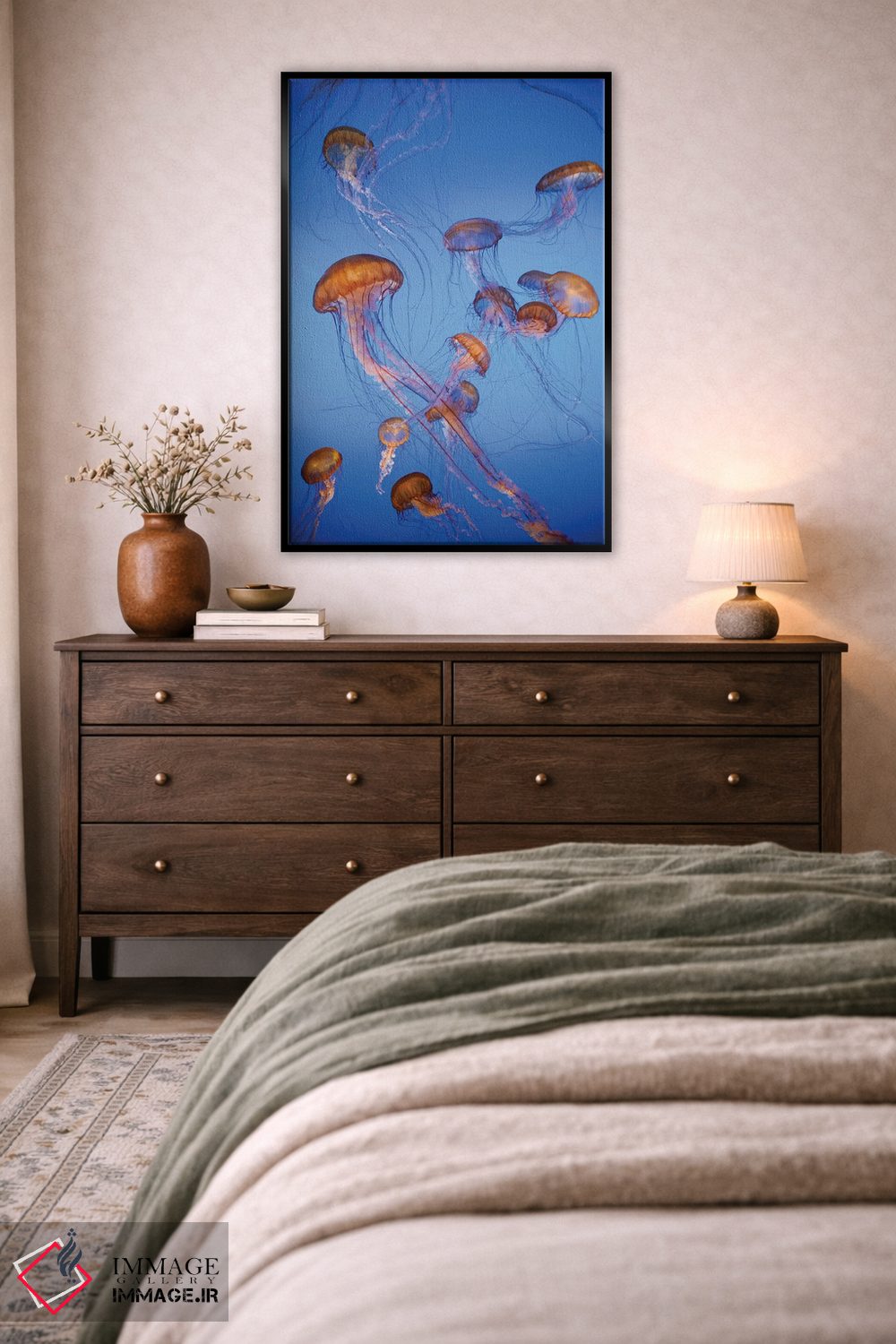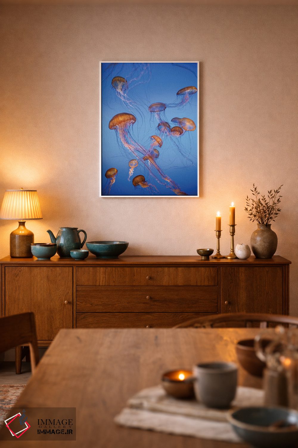برای دیوارهای ساده، «captive، California، عروس دریایی پاسیفیک سی نِتل، در اسارت، کالیفرنیا» اثرِ «جف فوت» فضا را صمیمیتر و دعوتکنندهتر نشان میدهد؛ برای دکورهای مدرن و مینیمال انتخابی خوشسلیقه است. برای دیوار گالریوار هم گزینهٔ خوبیست.