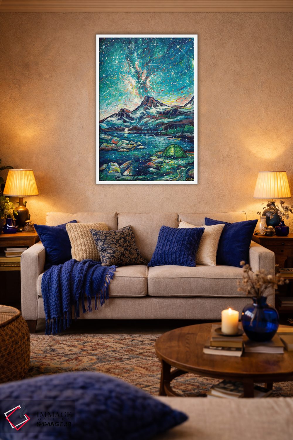 براساس پالت ترکیبی اثر، قاب تیک گرم (چوبی) پیشنهاد اول است و مشکی مات (فریم متوسط) مکمل. برای سفارشهای پروژهای با ابعاد و قابهای اختصاصی با ایماژ در تماس باشید.
