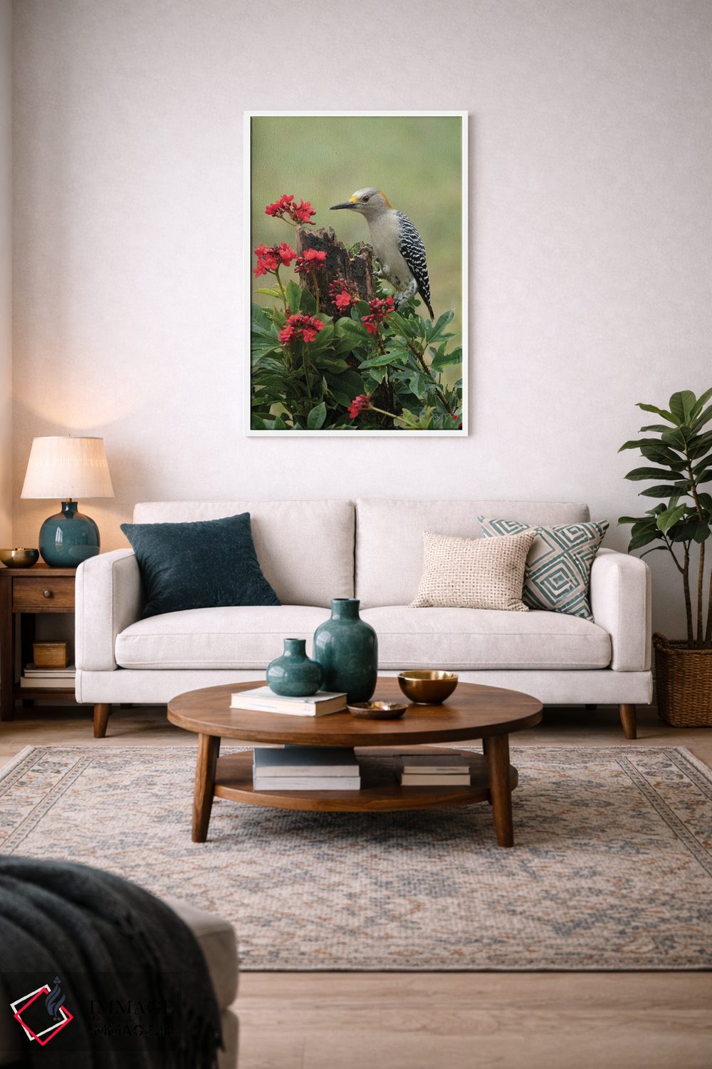 برای دیوارهای ساده، «طبیعت و دارکوب» اثرِ «جنت فیکار» به دیوار، انرژیِ نرم و زنده میدهد؛ برای اتاق کودک (بدون لحن کودکانه) انتخابی خوشسلیقه است. در کنار گیاهان و نور طبیعی، جذابتر هم میشود.
