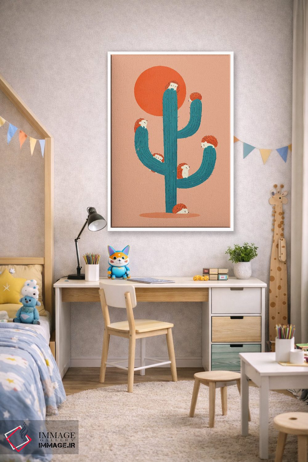 «خاردار» اثرِ «جی فلک» از آن کارهاییست که مثل یک امضای بامزه اما متین عمل میکند؛ برای اتاق کودک (بدون لحن کودکانه) انتخاب خوبیست. با نورپردازی نقطهای، جذابتر هم میشود.