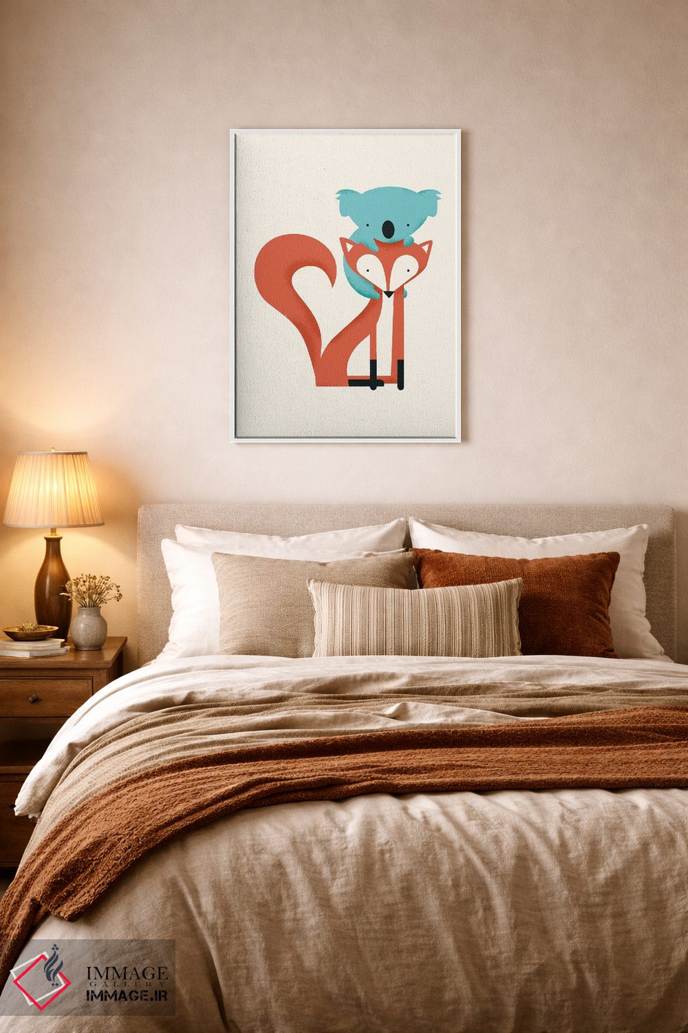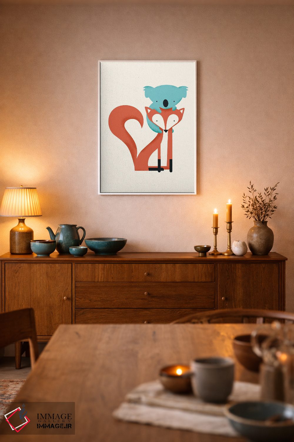 این اثر با عنوان «روباه و کوالا» اثرِ «جی فلک» برای دکورهای مینیمال، یک نقطهٔ توجه میسازد؛ برای اتاق بازی یا گوشهٔ مطالعه انتخابی خوشسلیقه است. برای دیوار گالریوار هم گزینهٔ خوبیست.