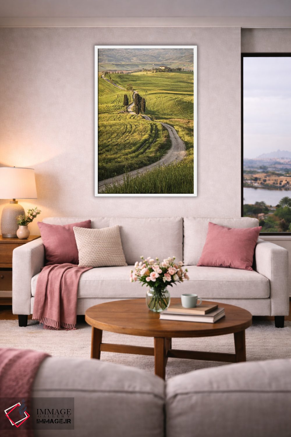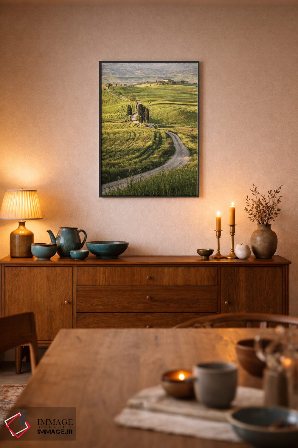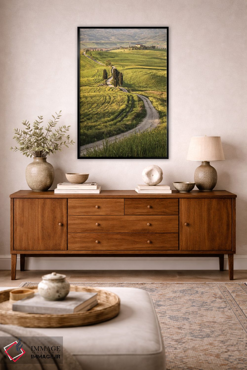 «Italy، Tuscany، Val D'Orcia، اروپا، ایتالیا، توسکانی، واله دورچیا» اثرِ «جان فورد» انتخابیست برای زمانی که به دیوار، شخصیت و جهت میدهد؛ برای کنار کتابخانه یا میز کار انتخابی عالی است. در کنار گیاهان آپارتمانی هم جلوهٔ لطیفی پیدا میکند.