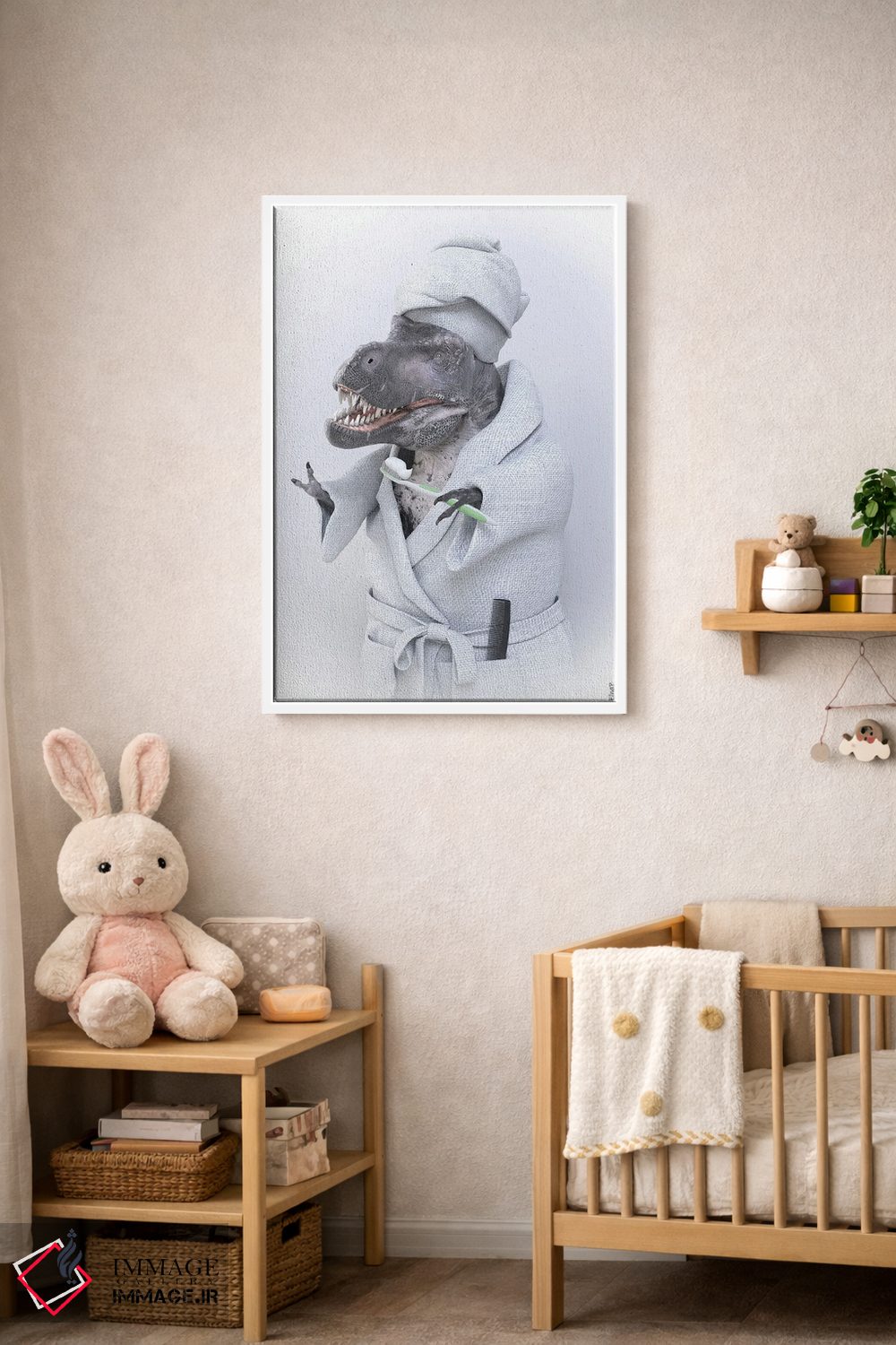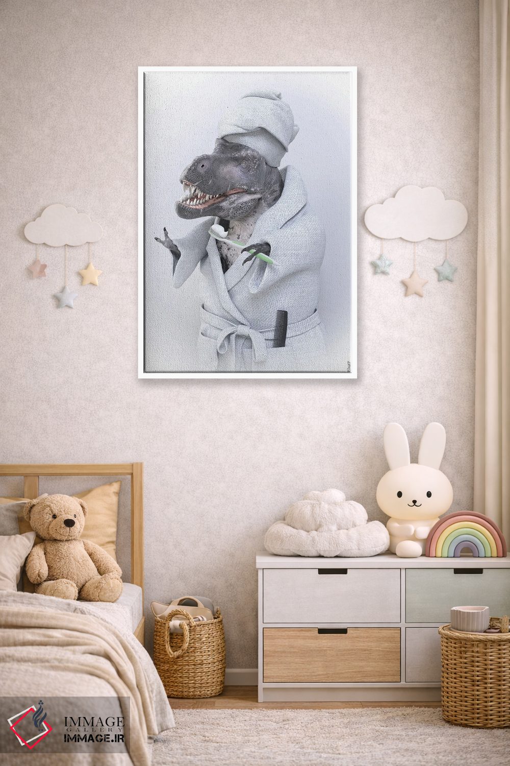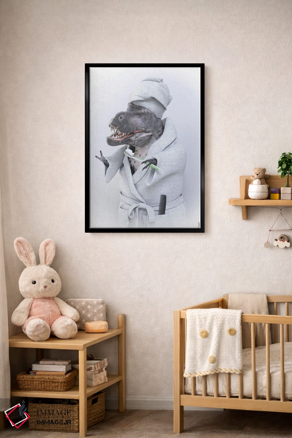 این اثر با عنوان «تیرانوسوروس در وان» اثرِ «جوفری فیلیپ» فضا را صمیمیتر و دعوتکنندهتر نشان میدهد؛ برای اتاق بازی یا گوشهٔ مطالعه انتخابی خوشسلیقه است. حسش صمیمی است، اما کیفیتش جدی و خوشپرداخت.