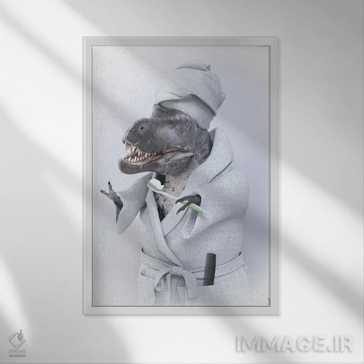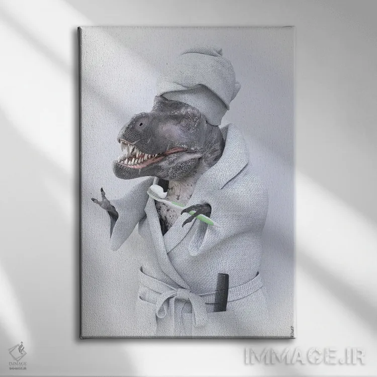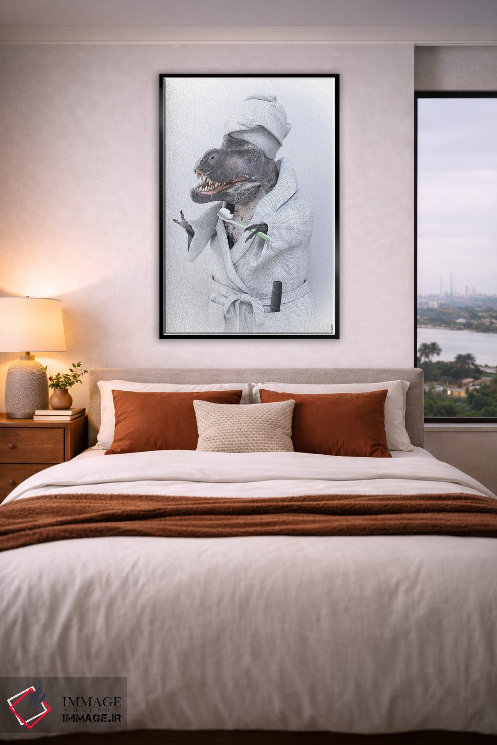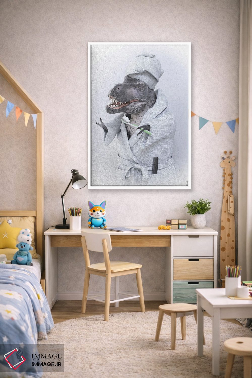 این اثر با عنوان «تیرانوسوروس در وان» اثرِ «جوفری فیلیپ» فضا را صمیمیتر و دعوتکنندهتر نشان میدهد؛ برای اتاق بازی یا گوشهٔ مطالعه انتخابی خوشسلیقه است. حسش صمیمی است، اما کیفیتش جدی و خوشپرداخت.
