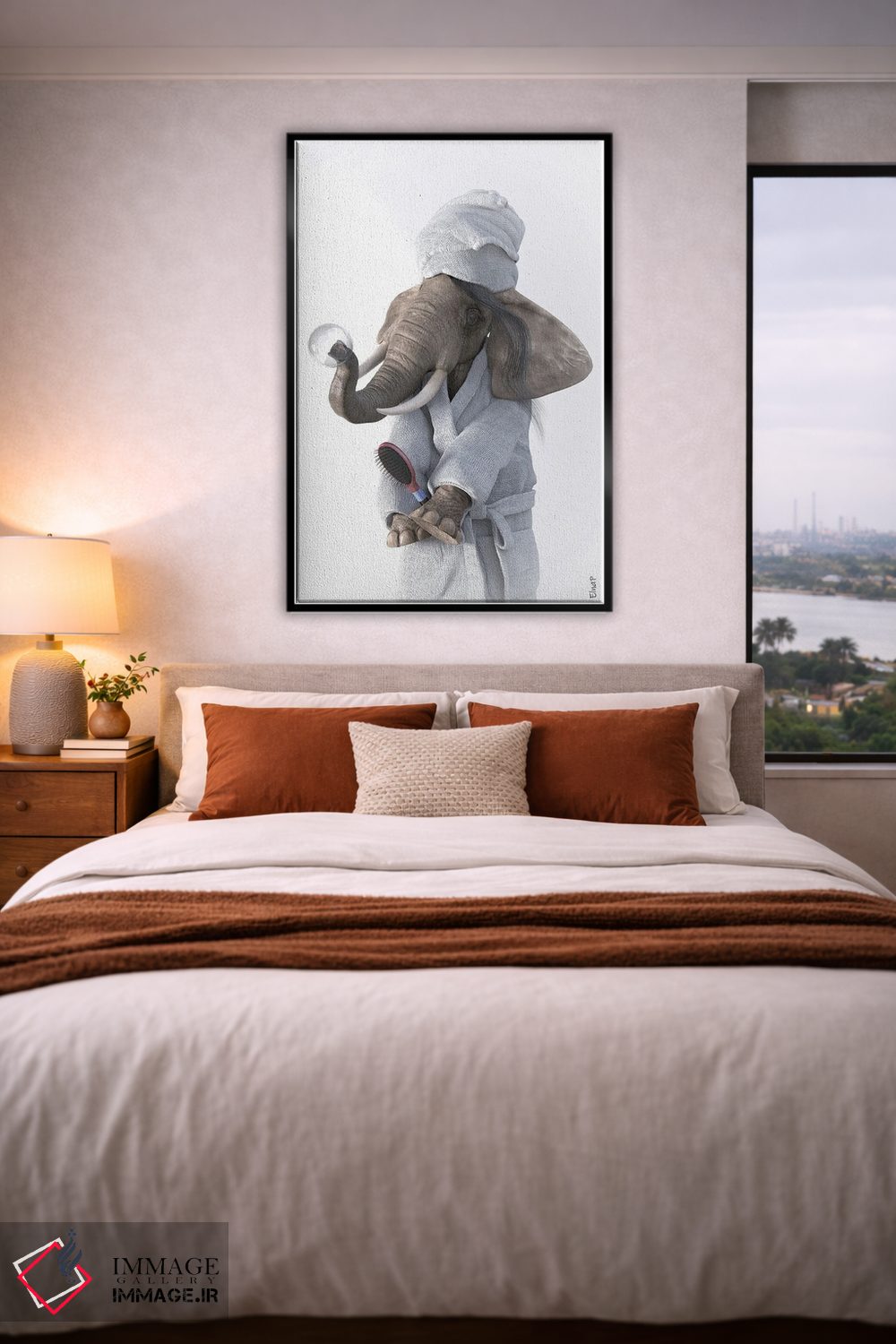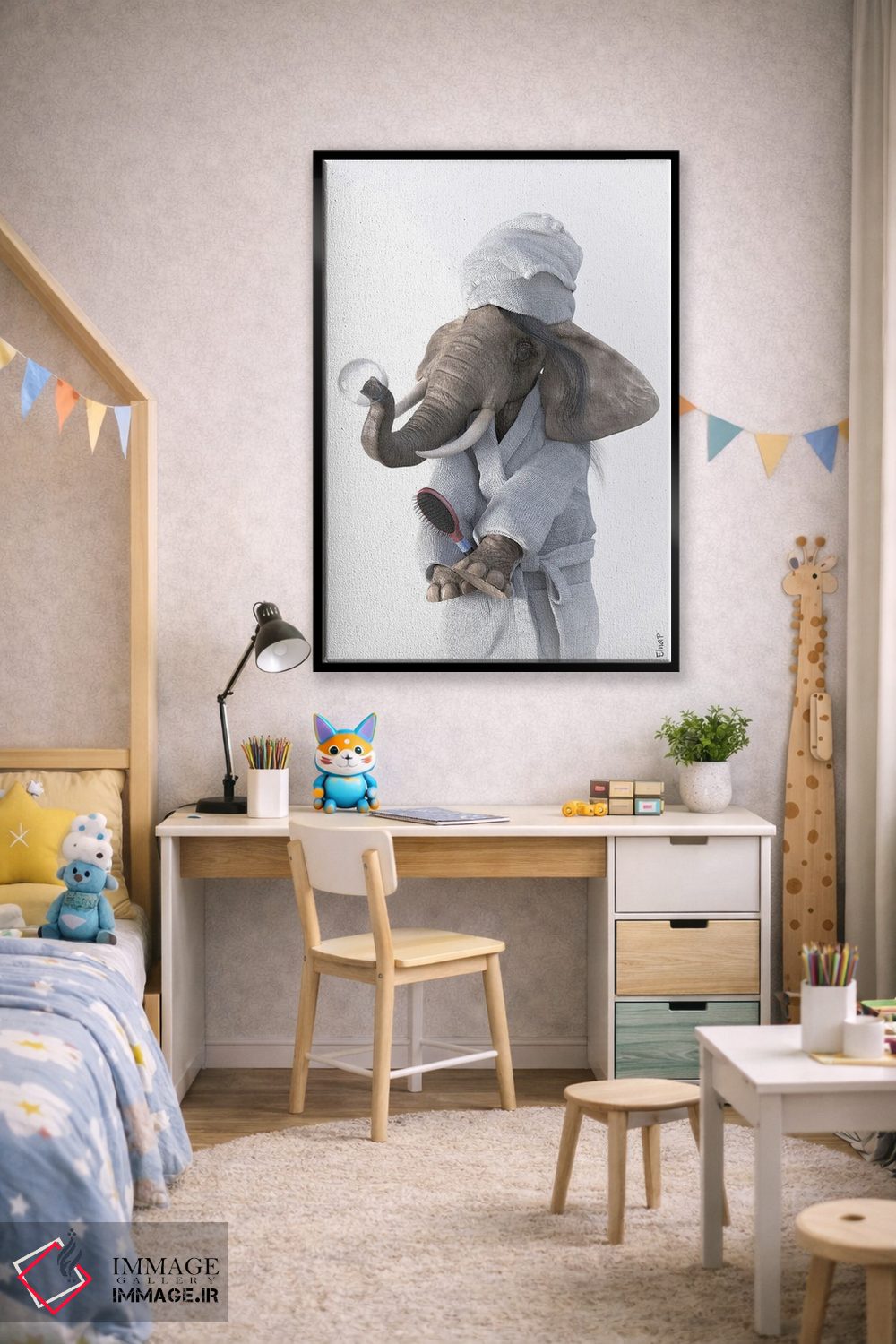 برای دکورهای صمیمی، «طرح فیل برای حمام» اثرِ «جوفری فیلیپ» فضا را صمیمیتر و دعوتکنندهتر نشان میدهد؛ برای کافههای کوچک و صمیمی انتخابی خوشسلیقه است. هر بار نگاهش میکنید، یک جزئیات تازه به چشم میآید.