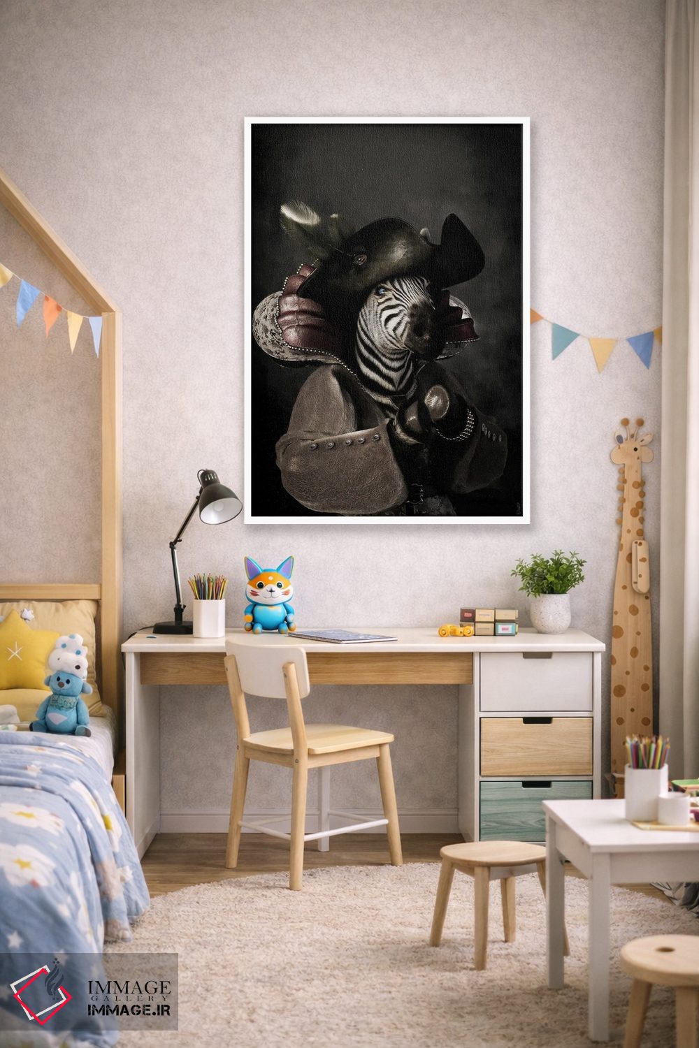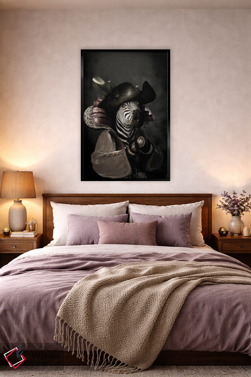 در «پرتره گورخر به سبک رنسانس قدیمی» اثرِ «جوفری فیلیپ»، فرم و رنگها کنترلشدهاند؛ نتیجه، یک اثر مرتب و خوشنشین برای دیوارهای مینیمال.