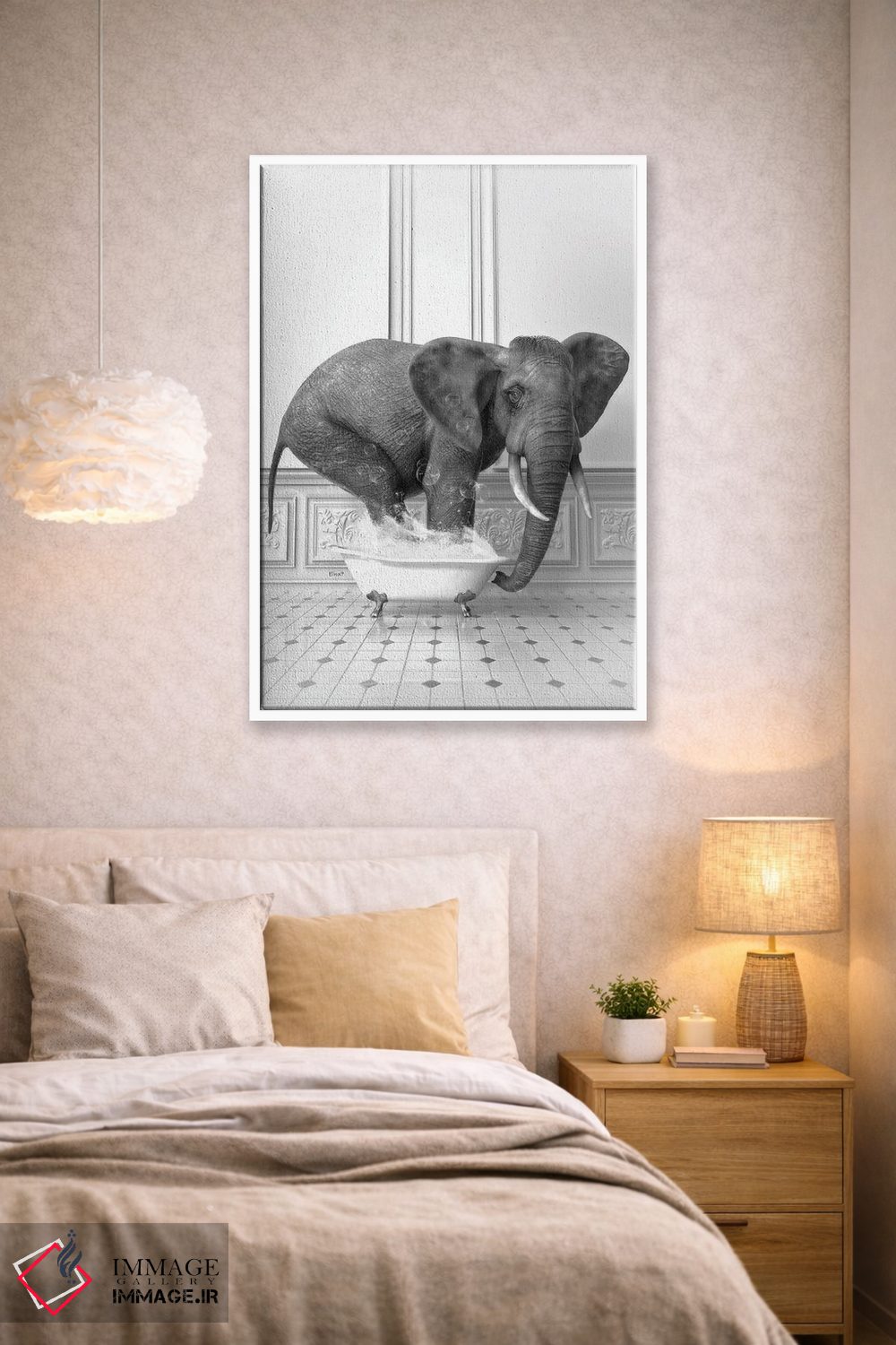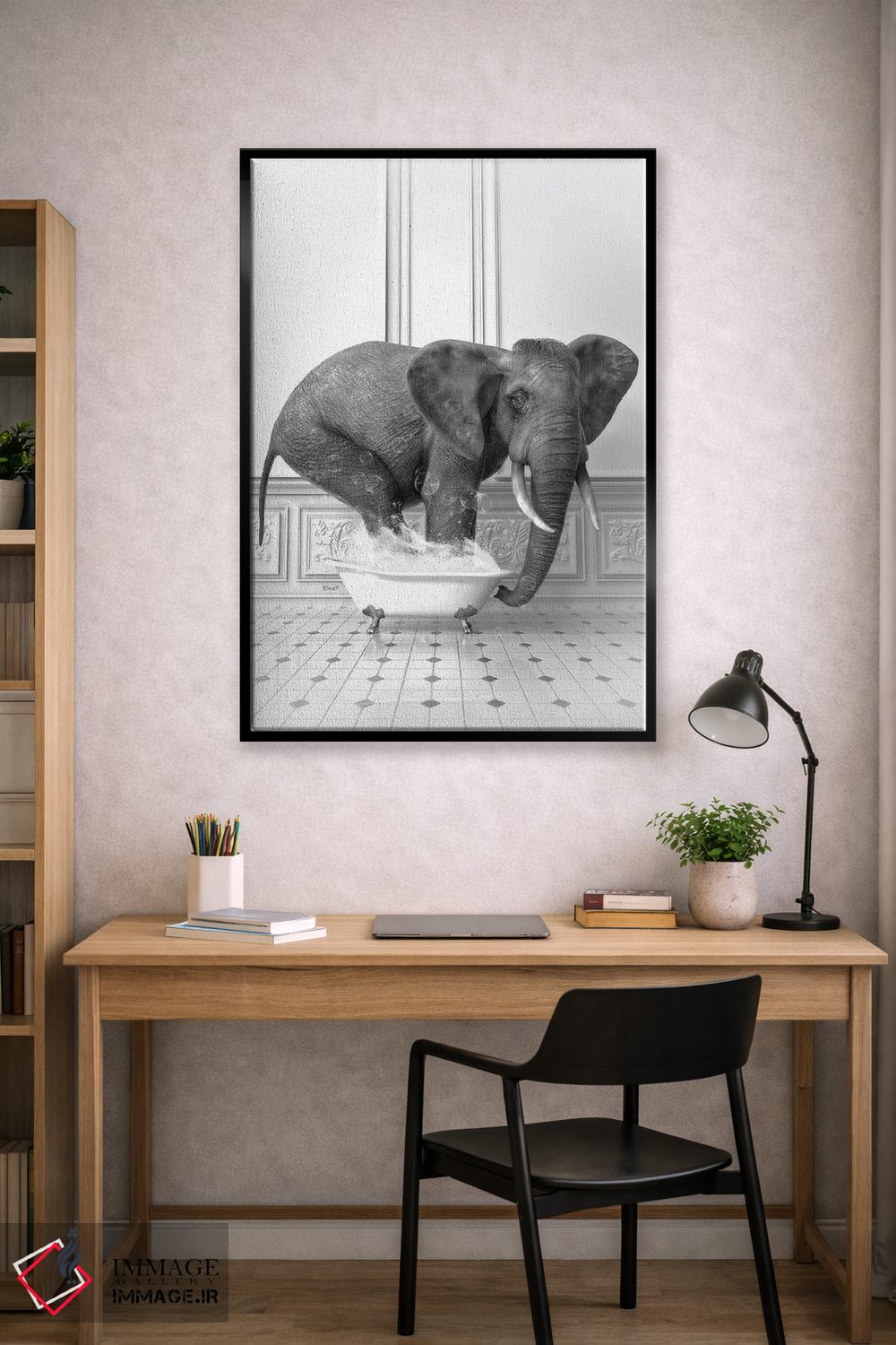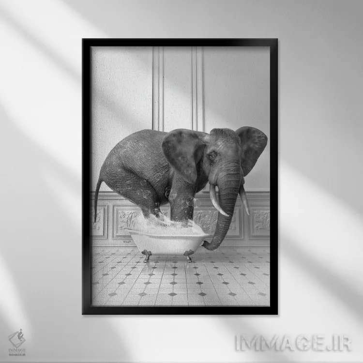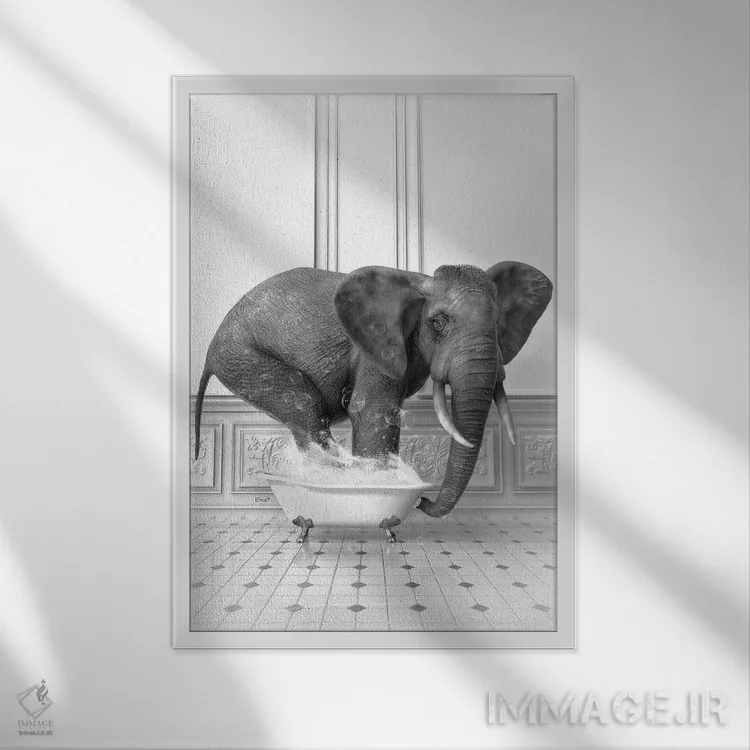 تابلو دکوراتیو فیل در حمام سیاه و سفید اثر جوفری فیلیپ