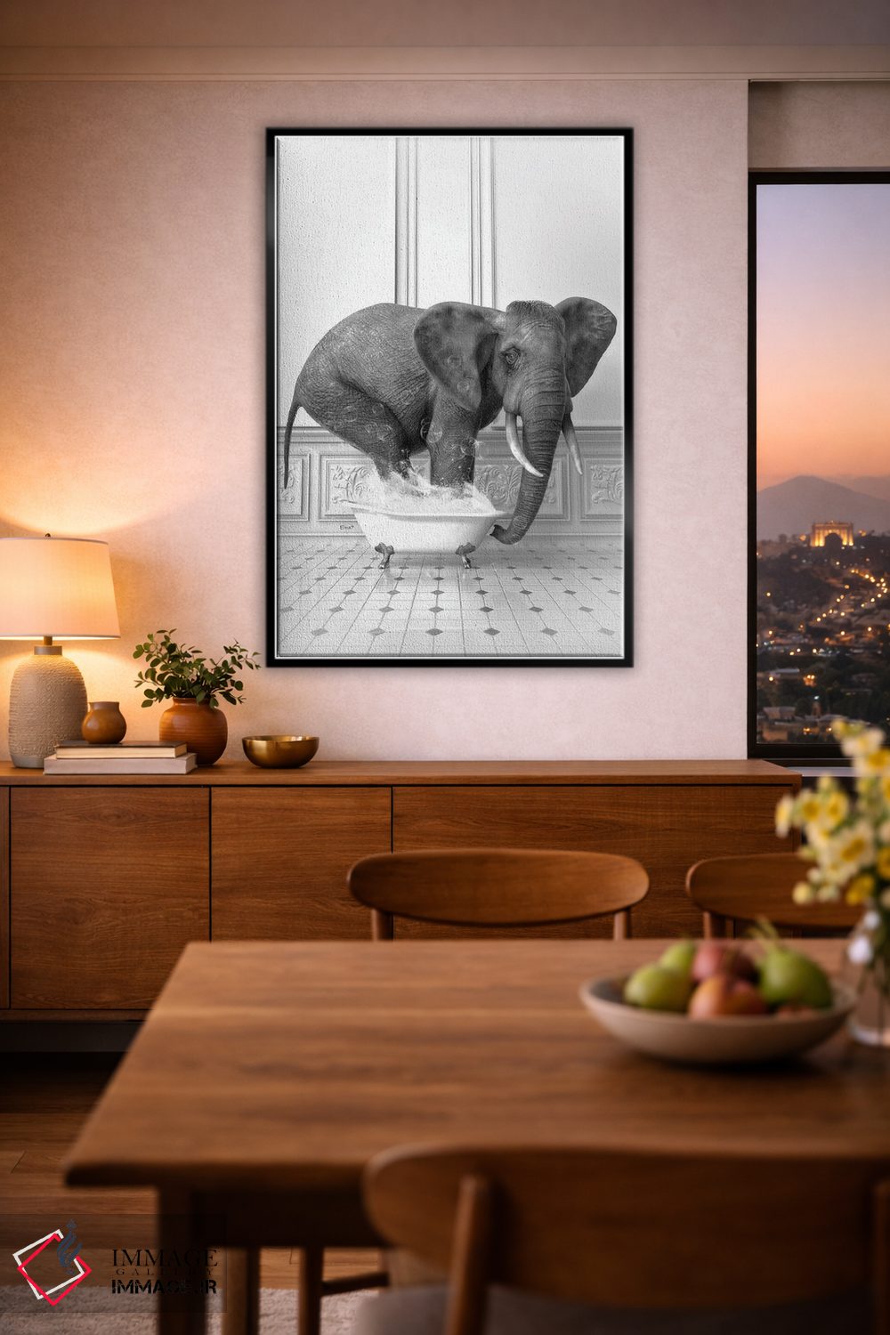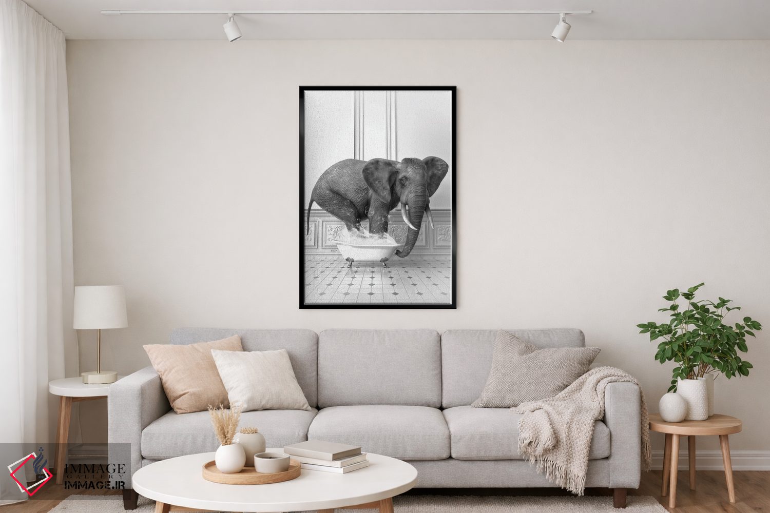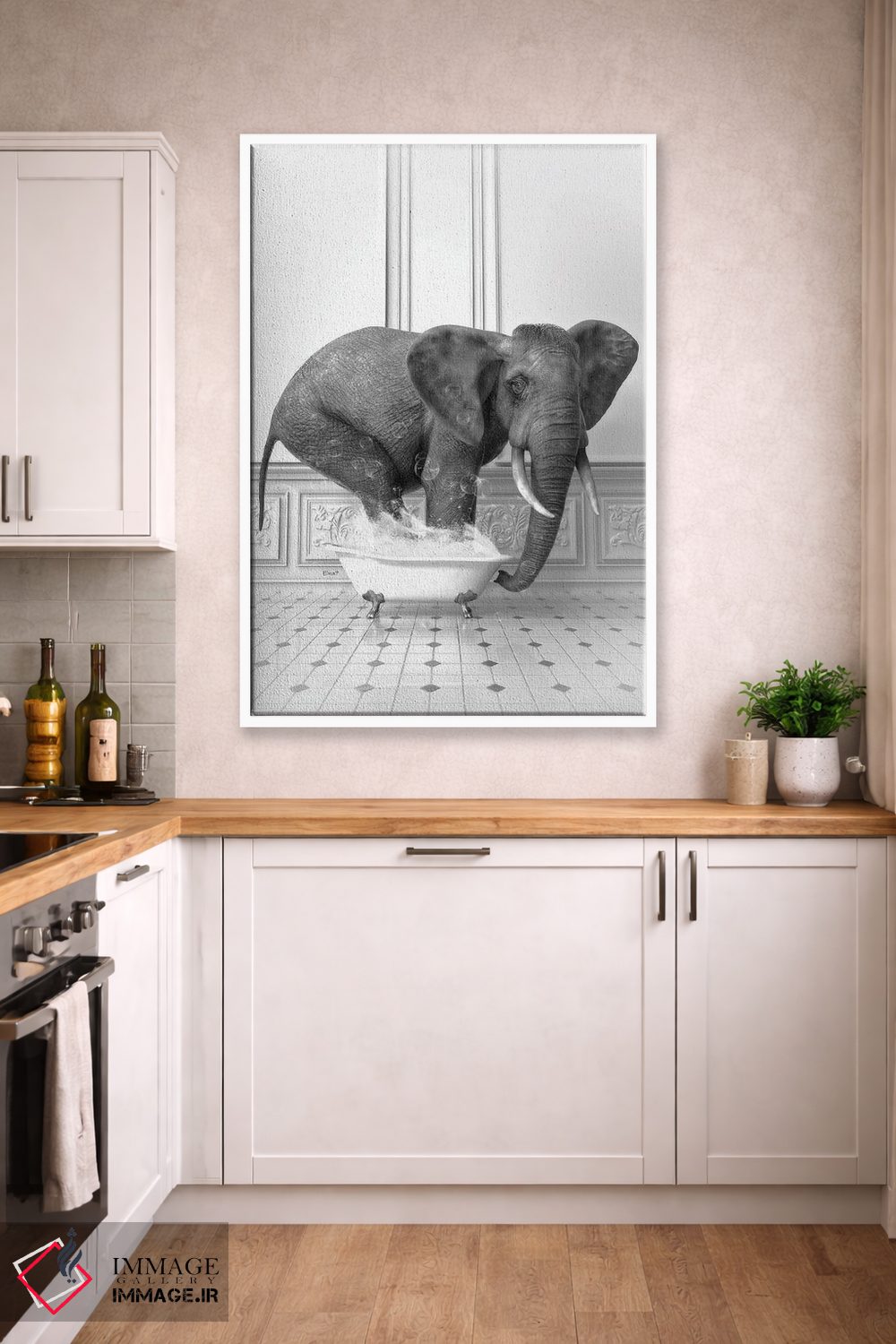 تابلو دکوراتیو فیل در حمام سیاه و سفید اثر جوفری فیلیپ