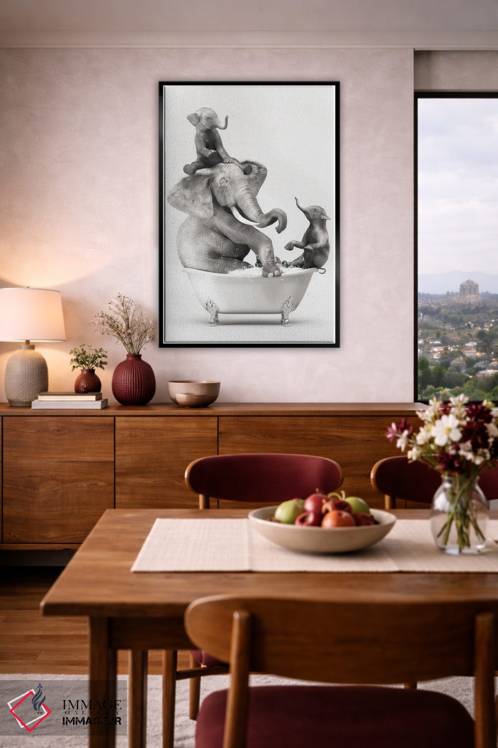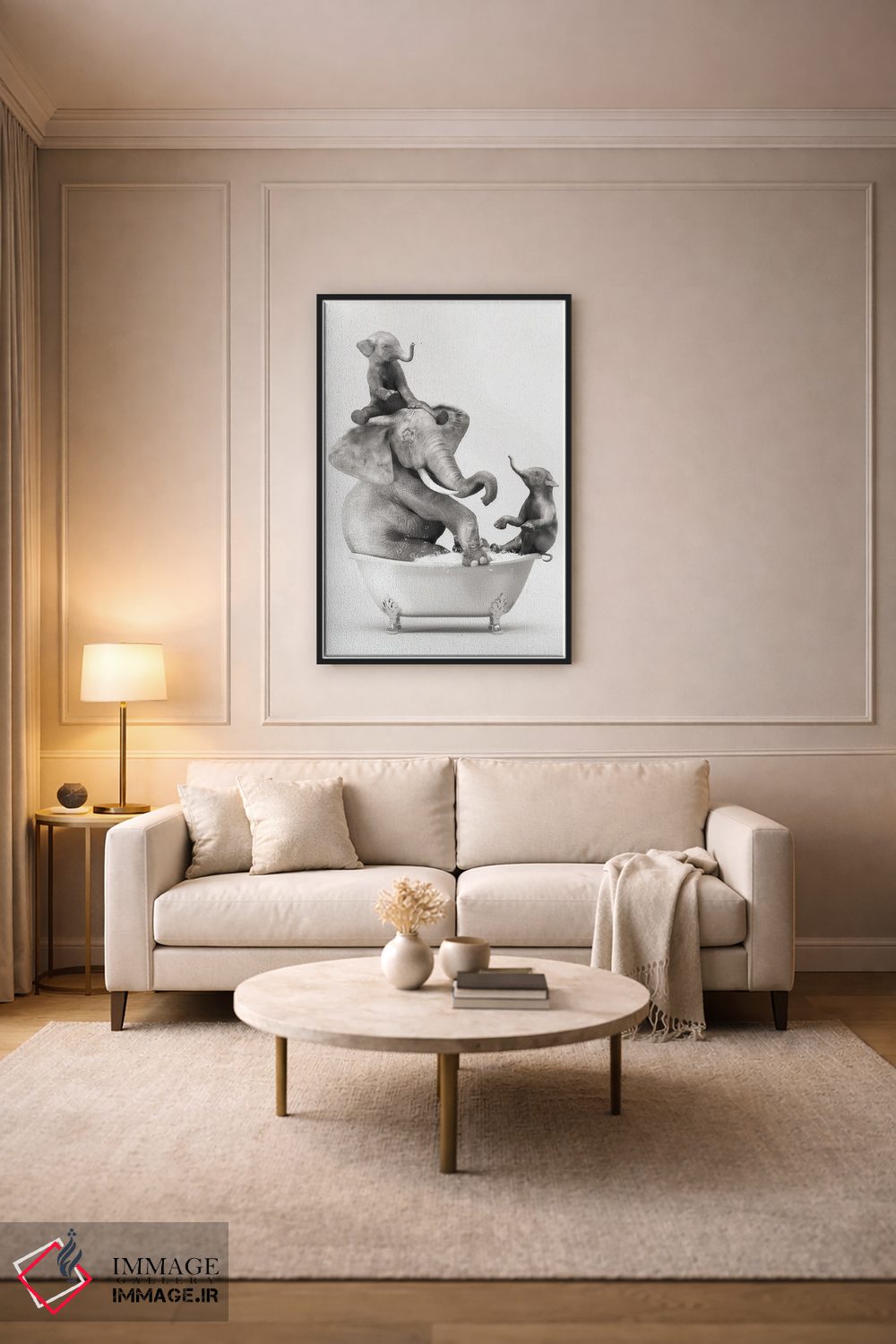براساس پالت خنثی اثر، قاب مشکی مات (فریم باریک) پیشنهاد اول است و سفید مات (فریم باریک) مکمل. برای سفارشهای پروژهای با ابعاد و قابهای اختصاصی با ایماژ در تماس باشید.