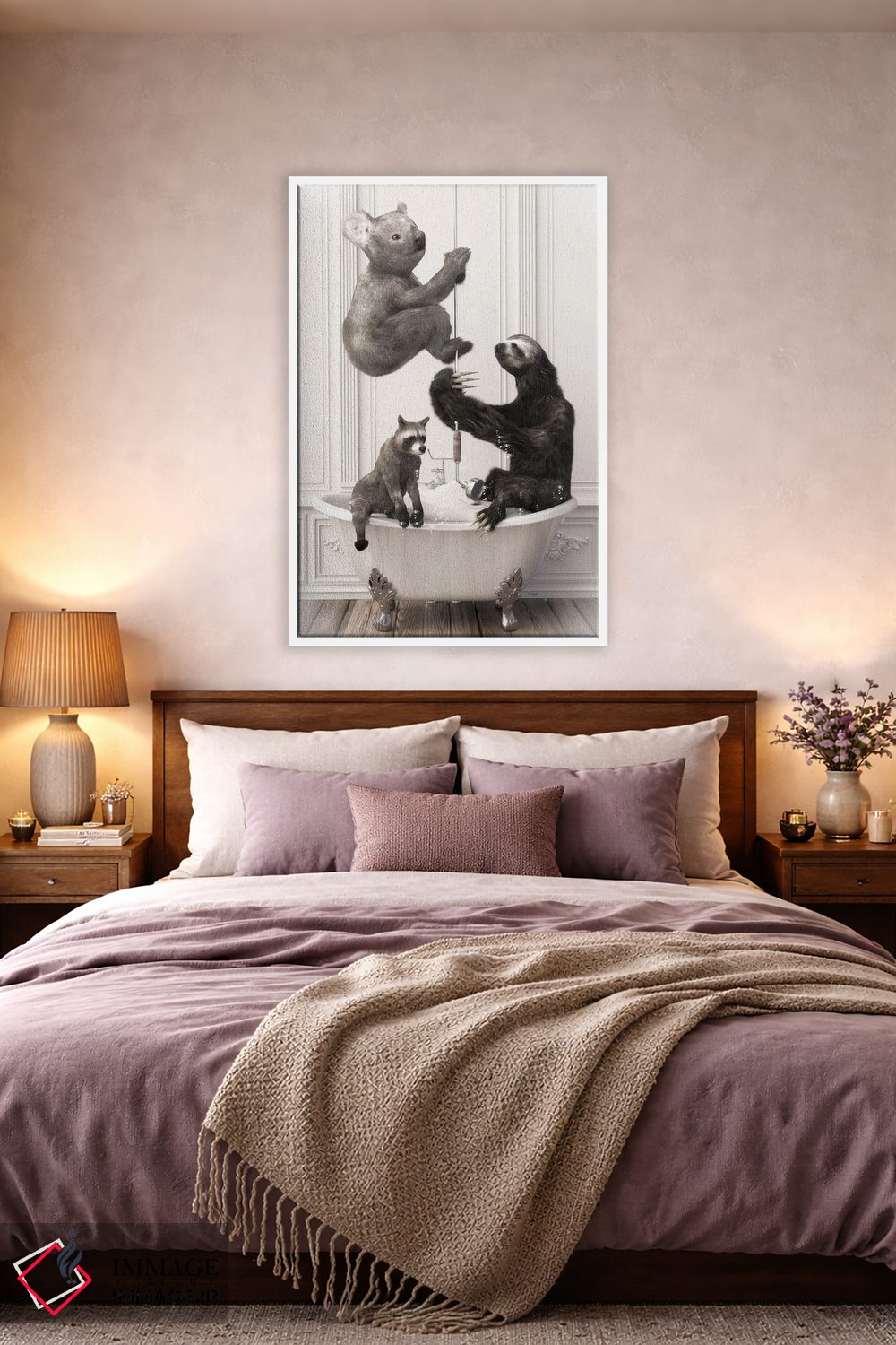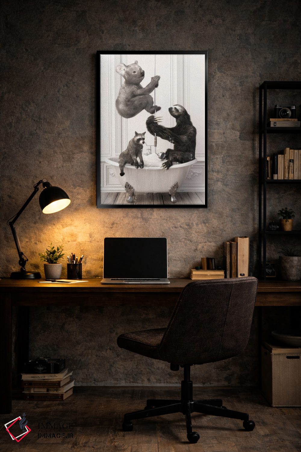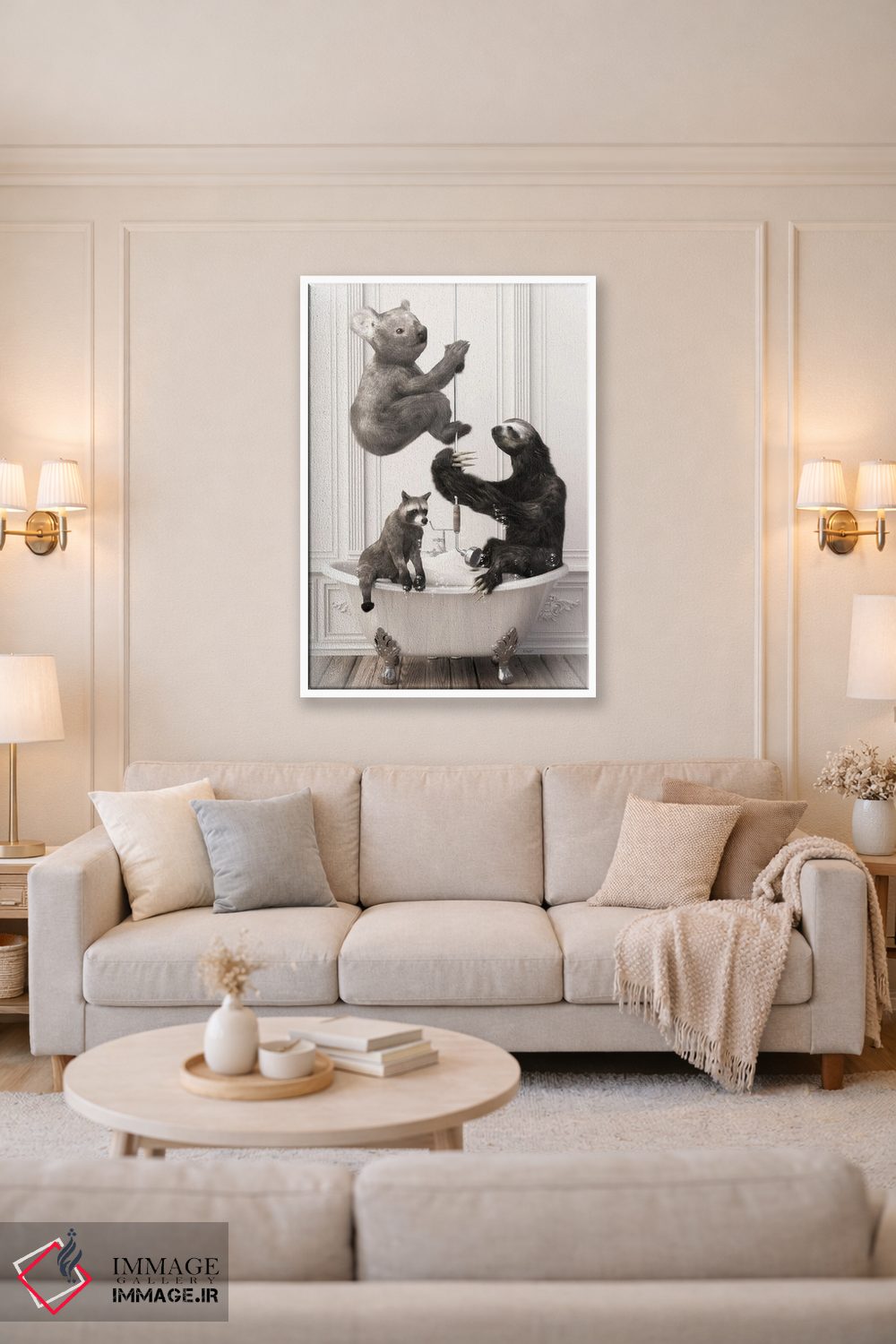 این اثر با عنوان «تنبل و کوالا در حمام» اثرِ «جوفری فیلیپ» بدون کودکانه شدن، بازیگوش و خوشپرداخت میماند؛ برای اتاق کودک (بدون لحن کودکانه) انتخابی خوشسلیقه است. با نورپردازی نقطهای، جذابتر هم میشود.