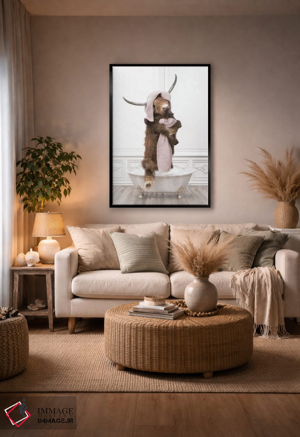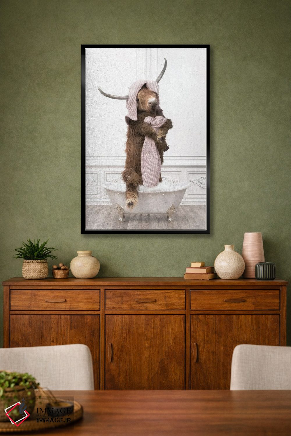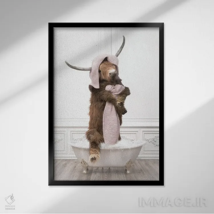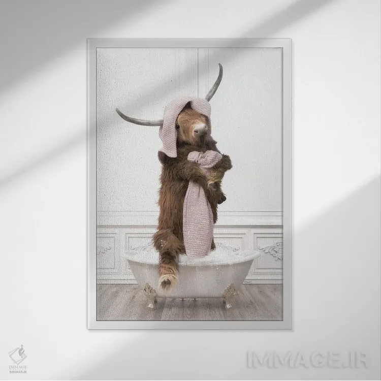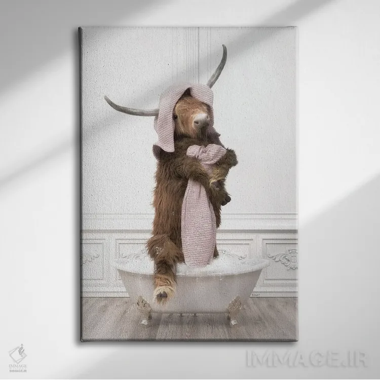 اگر به آثار حیوانات علاقه دارید، «گاو کوهستانی در حمام با حوله حمامی» اثرِ «جوفری فیلیپ» گرما و شخصیت به فضا اضافه میکند، برای اتاق بازی یا گوشهٔ مطالعه گزینهٔ مناسبیست. برای دیوار گالریوار هم گزینهٔ خوبیست.