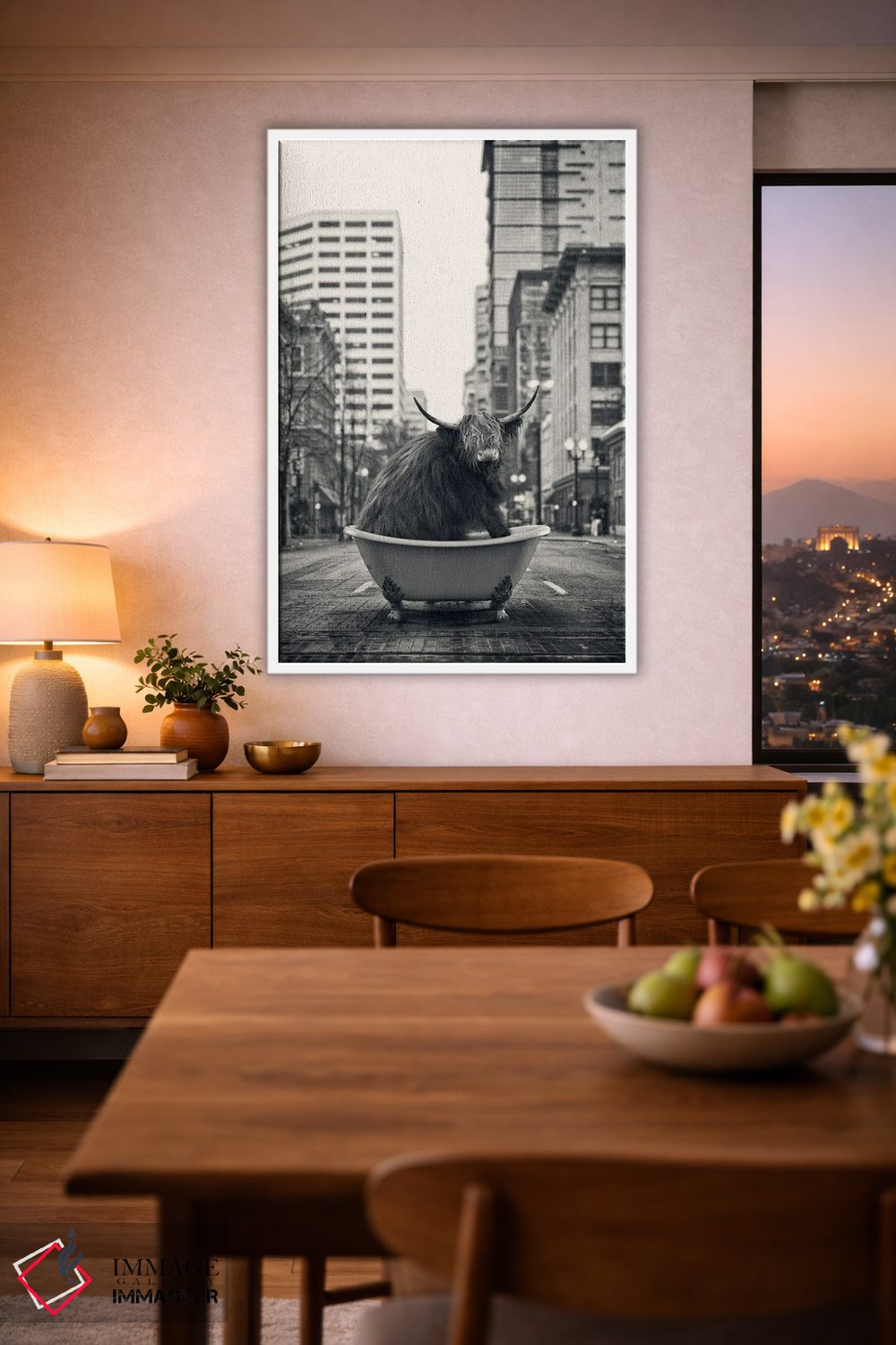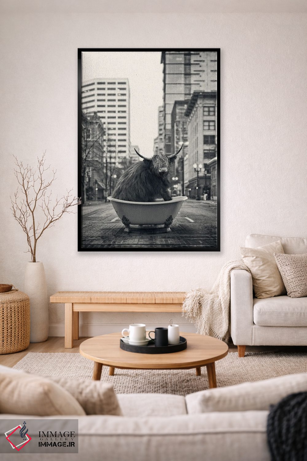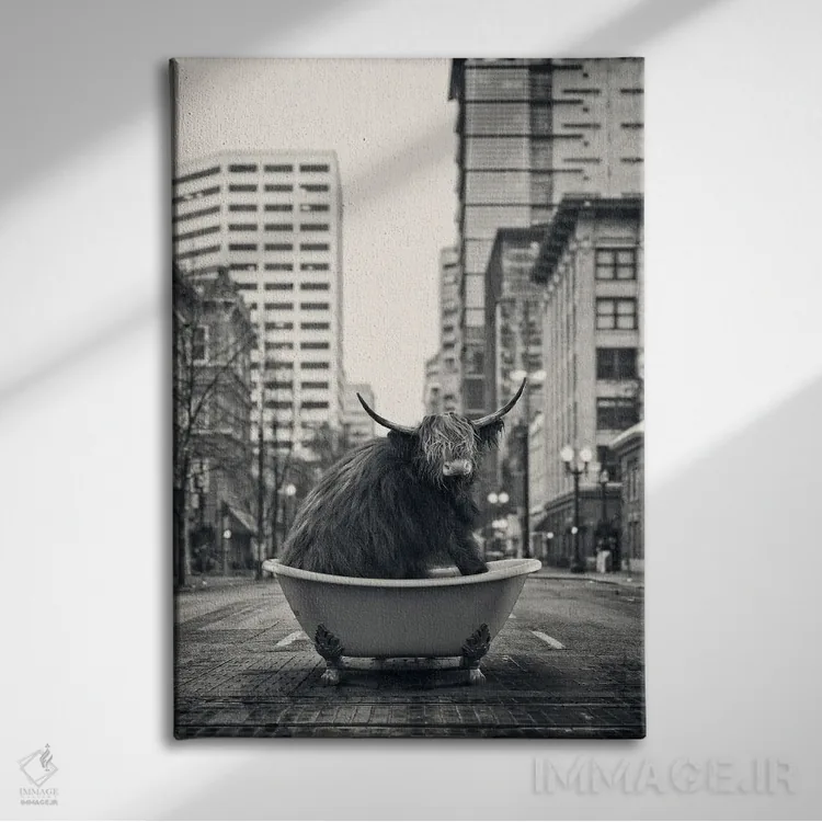 تابلو دکوراتیو گاو کوهستانی در خیابان اثر جوفری فیلیپ