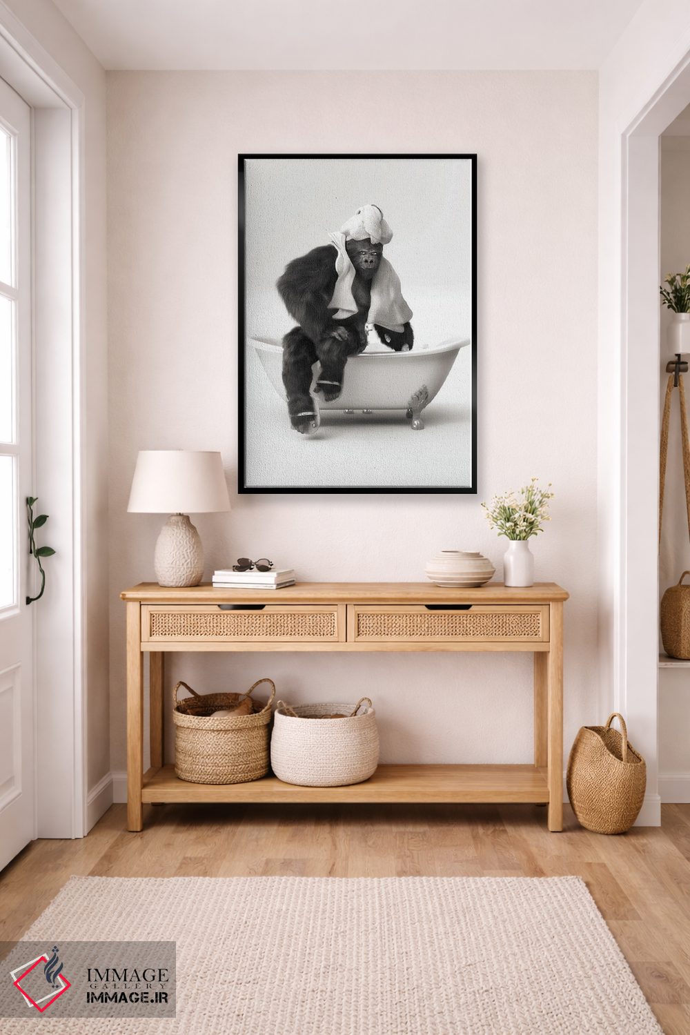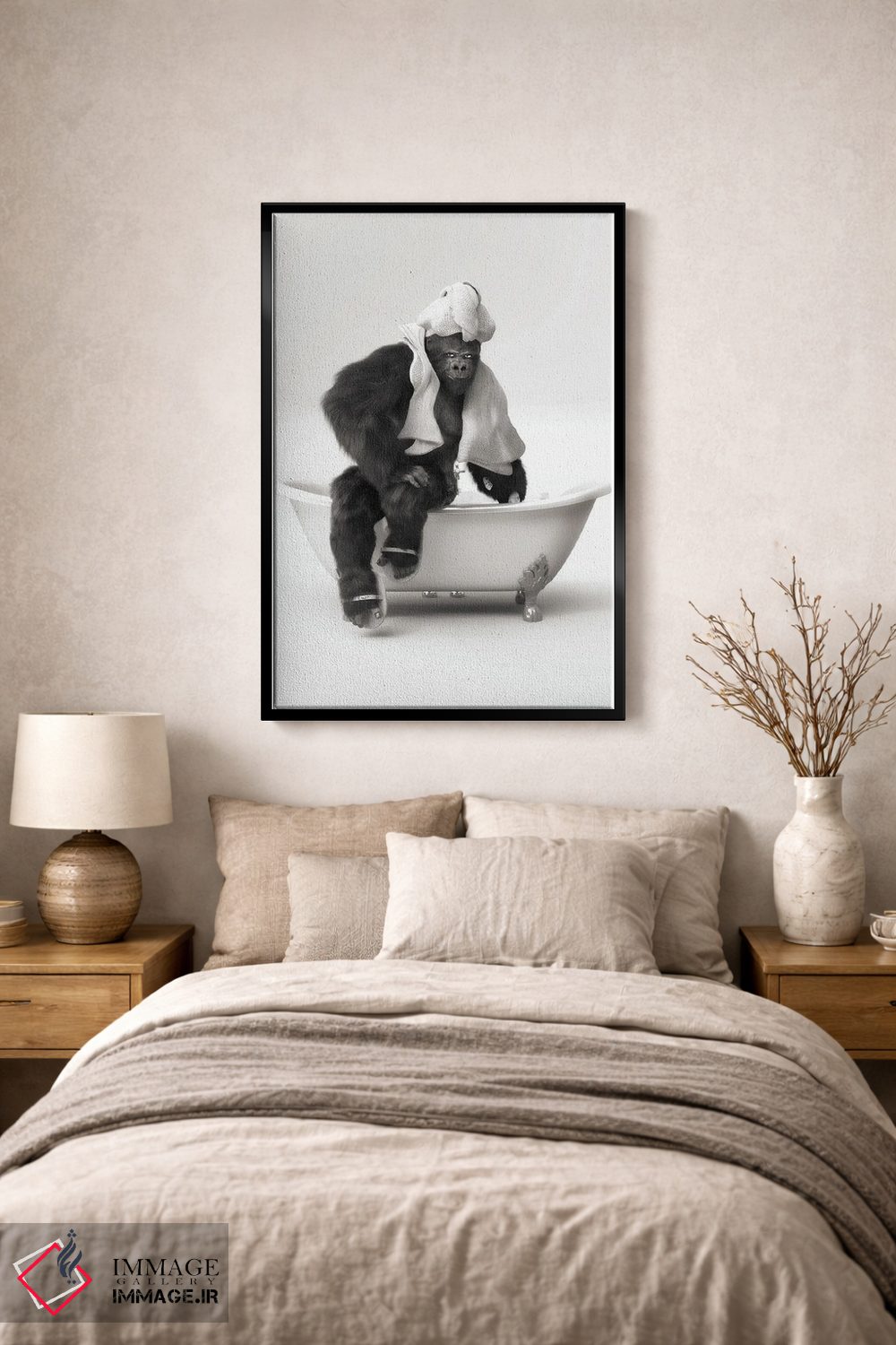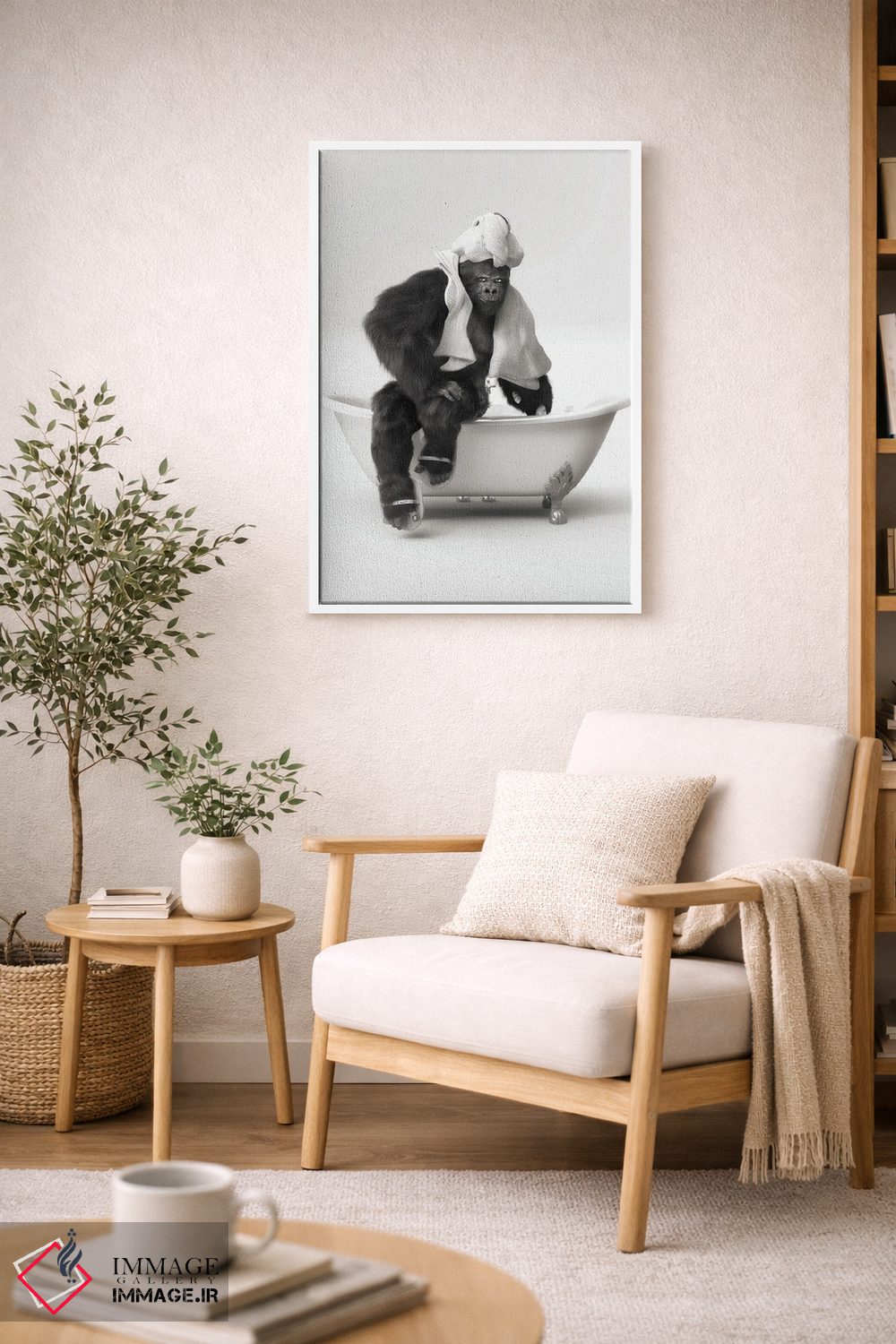 «گوریل در وان حمام» اثرِ «جوفری فیلیپ» میتواند فضا را صمیمیتر و دعوتکنندهتر نشان بدهد؛ برای اتاق بازی یا گوشهٔ مطالعه پیشنهاد میشود. هر بار نگاهش میکنید، یک جزئیات تازه به چشم میآید.