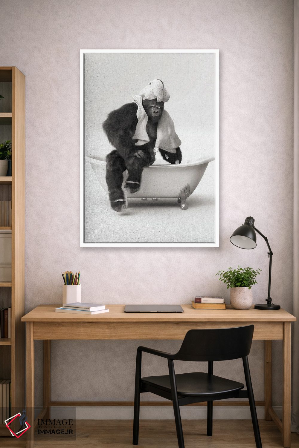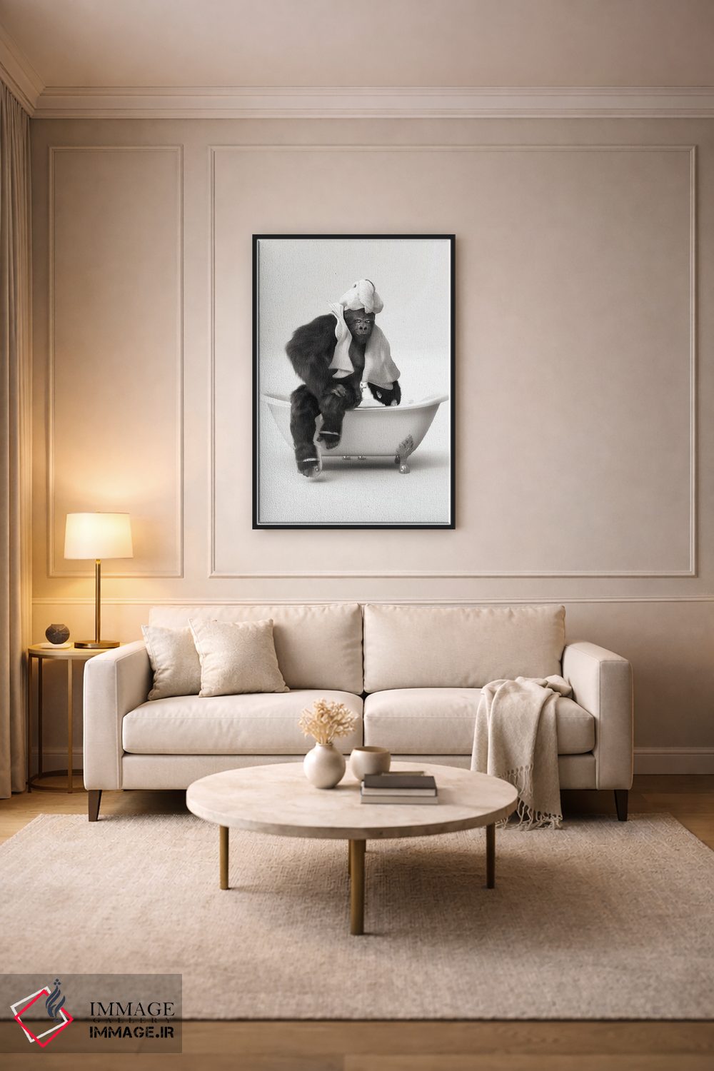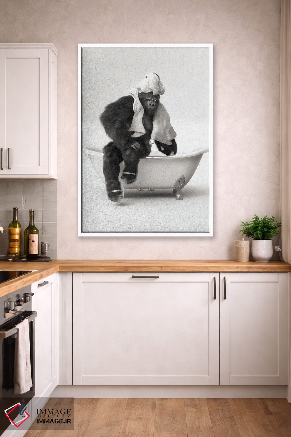 «گوریل در وان حمام» اثرِ «جوفری فیلیپ» میتواند فضا را صمیمیتر و دعوتکنندهتر نشان بدهد؛ برای اتاق بازی یا گوشهٔ مطالعه پیشنهاد میشود. هر بار نگاهش میکنید، یک جزئیات تازه به چشم میآید.