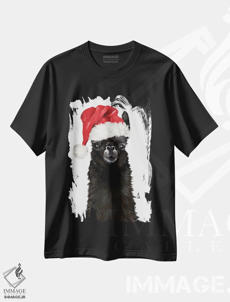 تیشرت طرح دار لامای سیاه کریسمسی اثر بگ نوز ورک