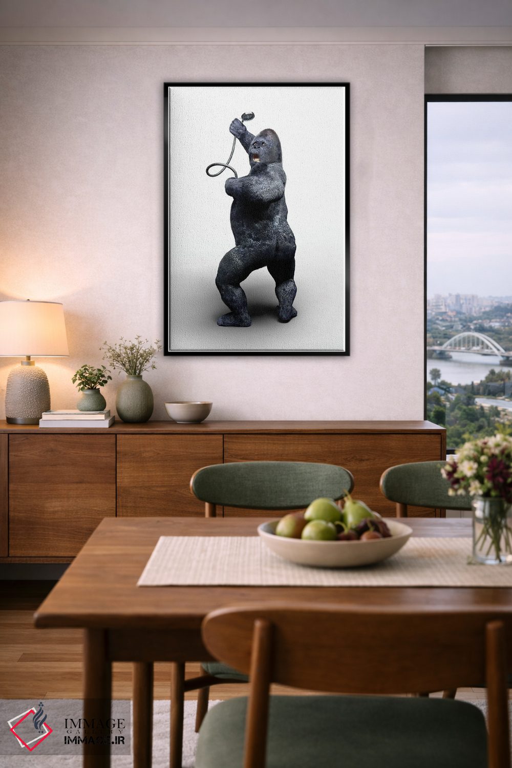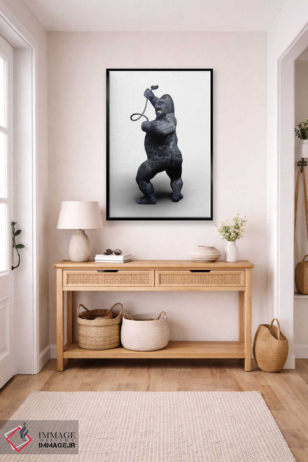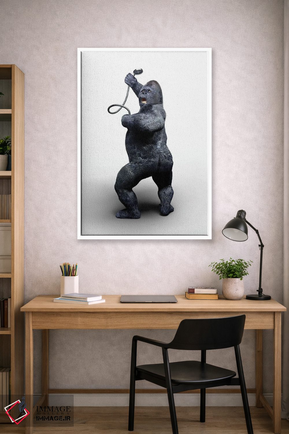 اگر به آثار حیوانات علاقه دارید، «گوریل در حال دوش گرفتن» اثرِ «جوفری فیلیپ» به فضا، گرمیِ ملایم اضافه میکند، برای دکورهای مدرن و مینیمال گزینهٔ مناسبیست. با قاب چوبی یا مشکی، حس مرتبتری پیدا میکند.