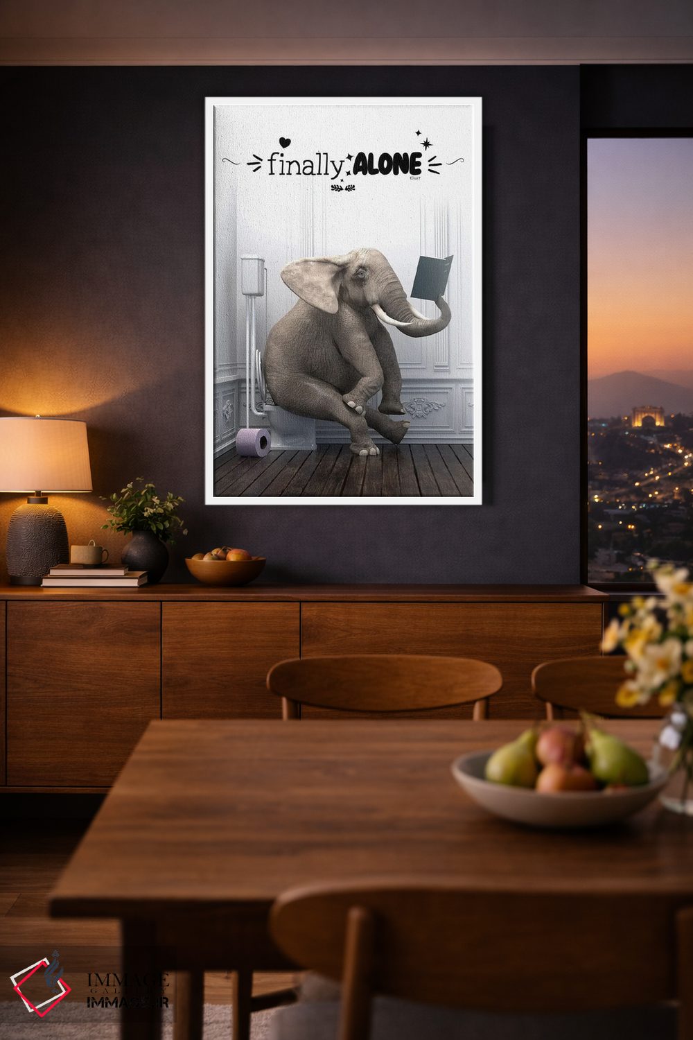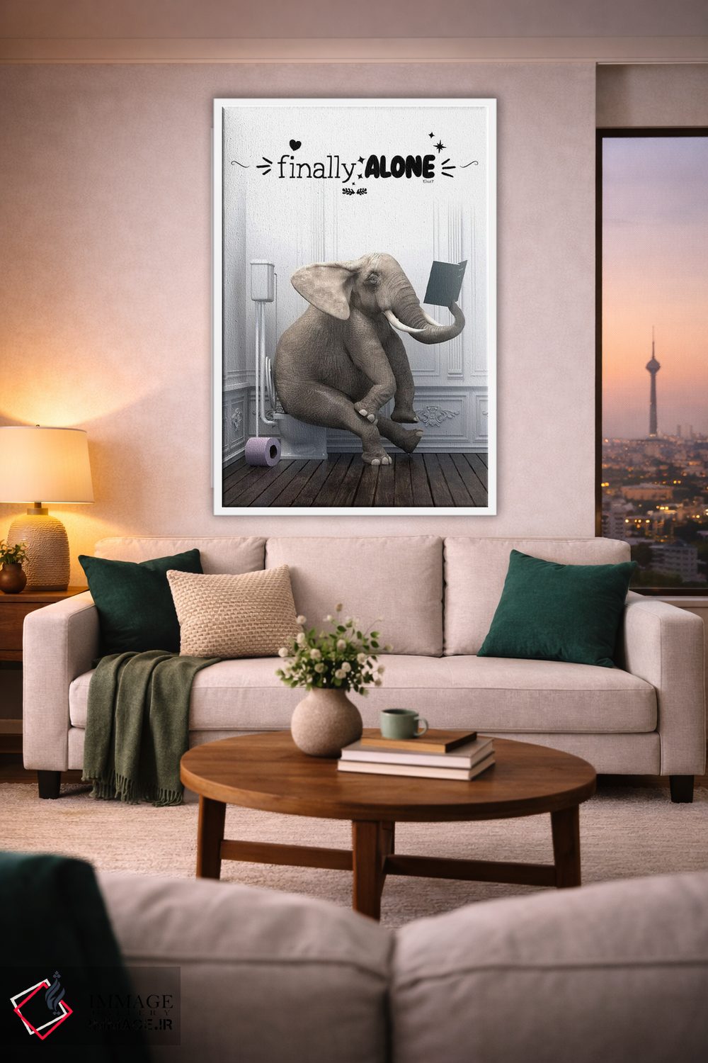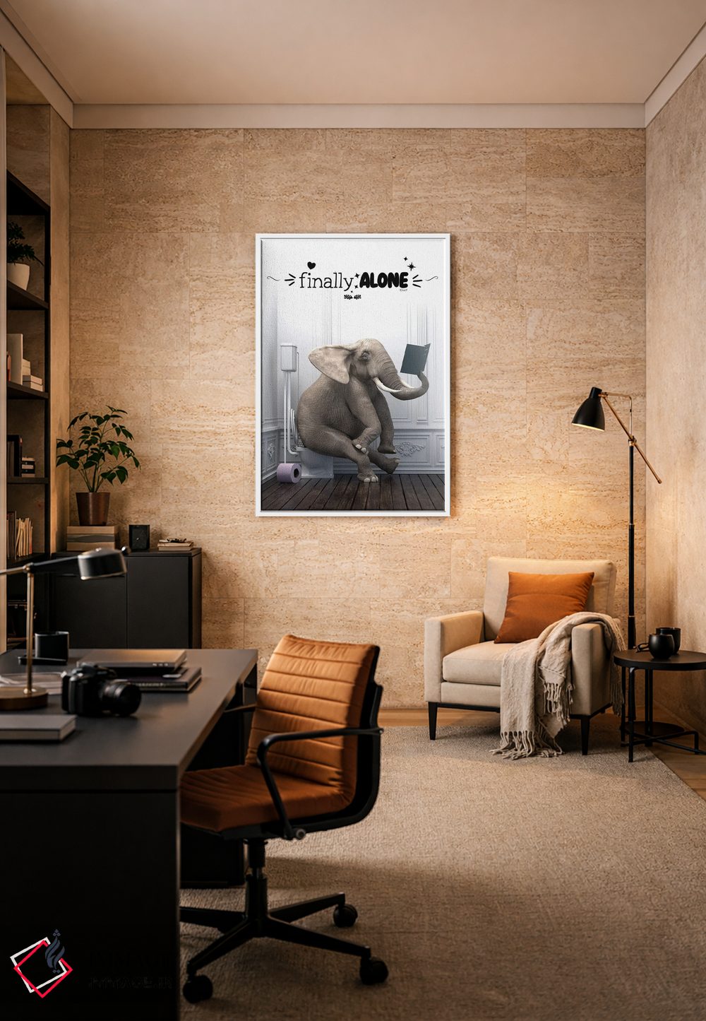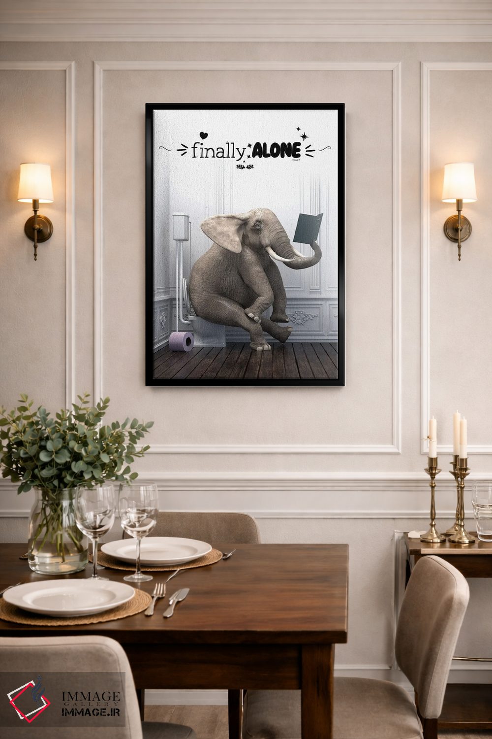 اگر میخواهی یک قاب متفاوت اما حرفهای داشته باشی، «فیل در دستشویی همراه با جمله انگیزشی» اثرِ «جوفری فیلیپ» با موضوعِ این اثر و اجرای هنری انتخاب خوبی است.