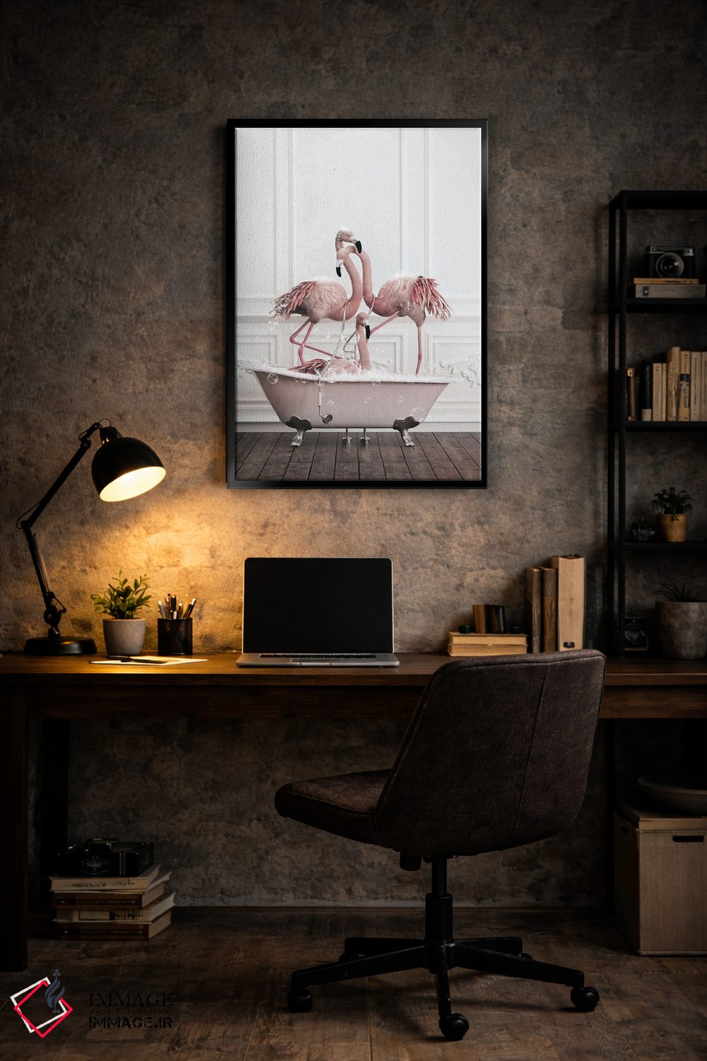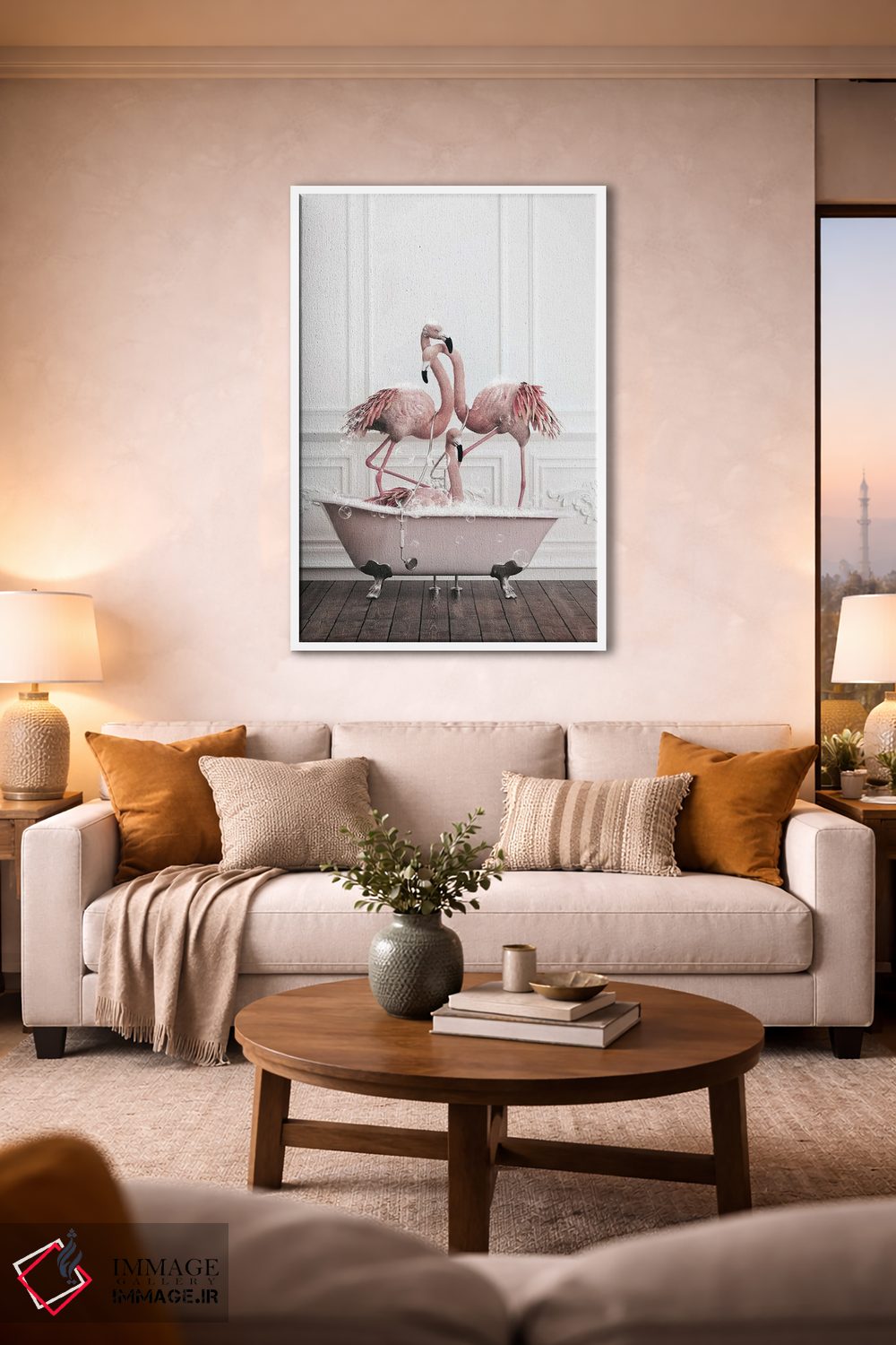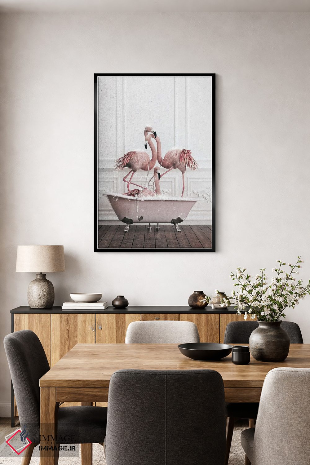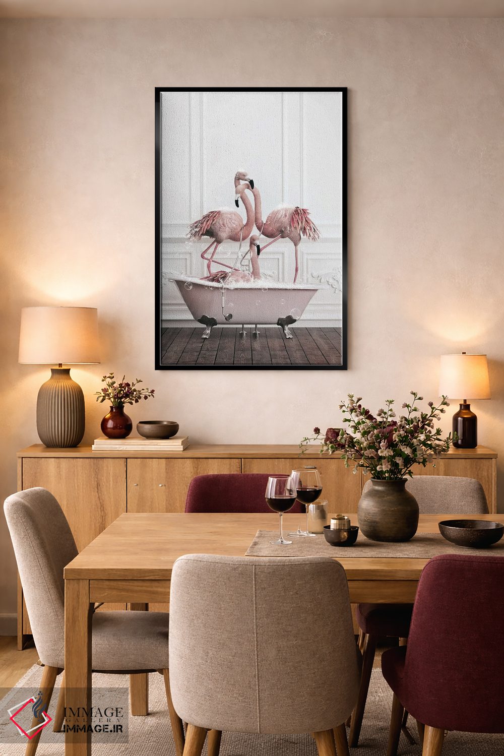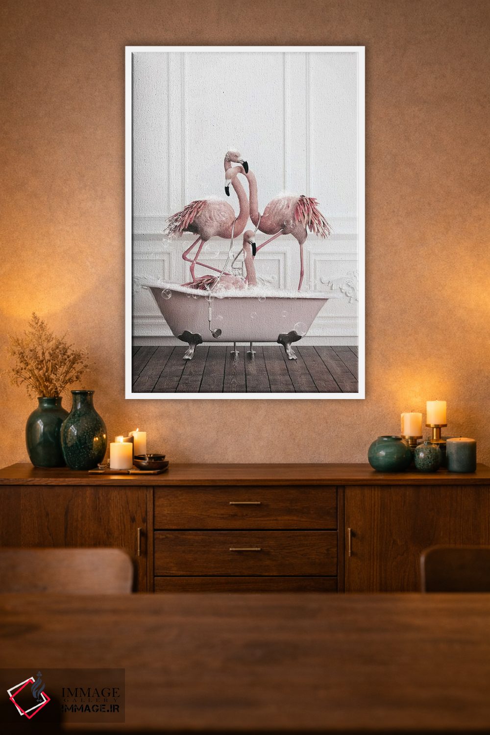 تابلو دکوراتیو فلامینگو در حمام اثر جوفری فیلیپ