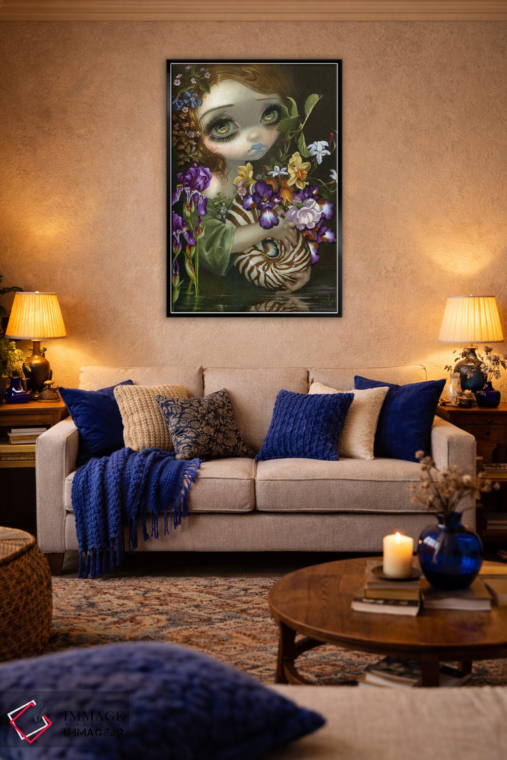 تابلو دکوراتیو دسته گل ناتیلوس اثر جزمین بکت-گریفیت - نمای روبه‌رو روی دیوار