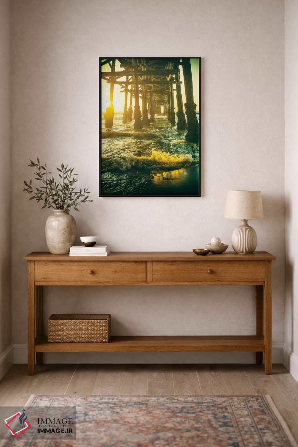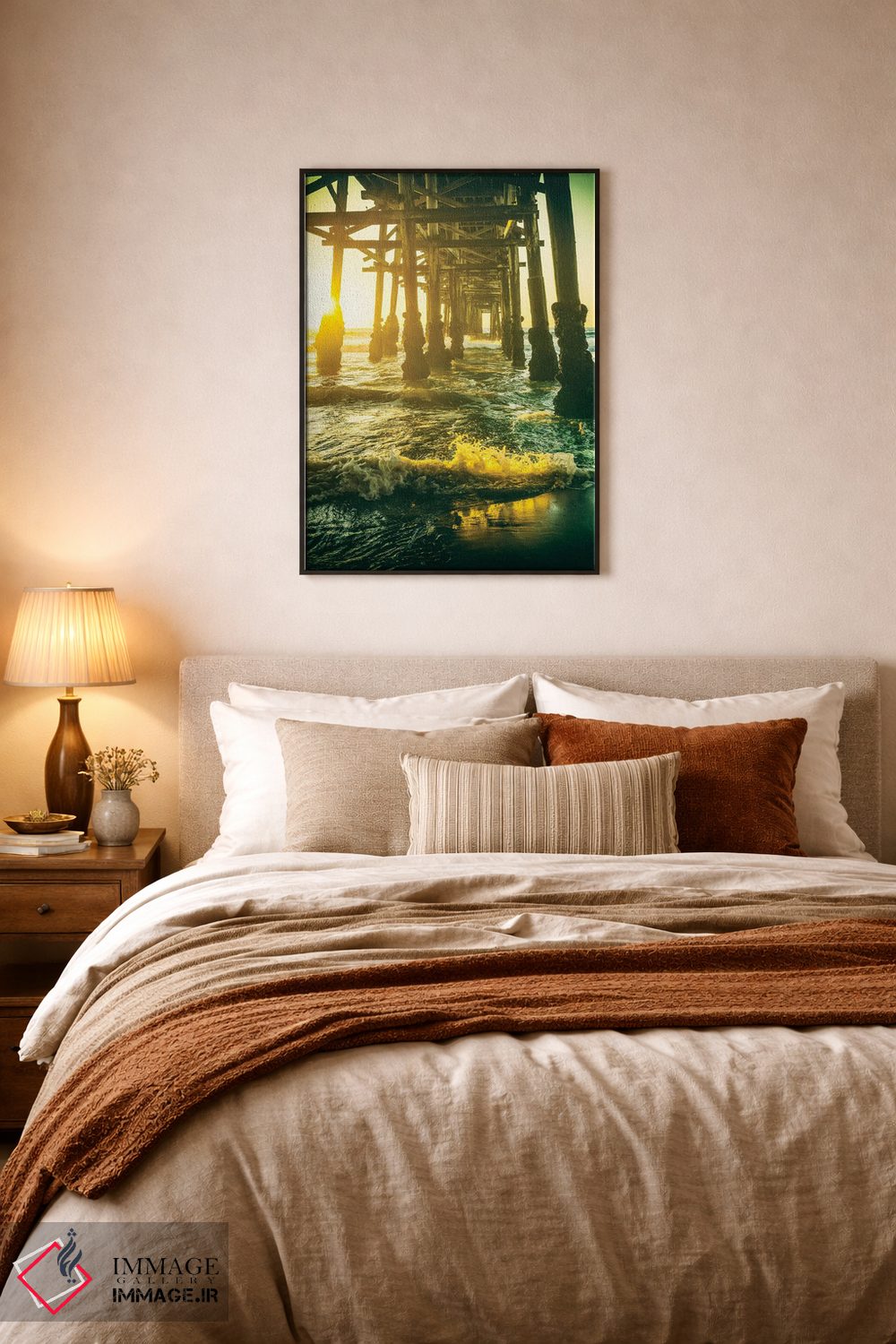«موجسواری زیر اسکله» اثرِ «جوزف اس. جیاکالونه» میتواند جلوهٔ رنگها را طبیعیتر و متعادلتر نشان بدهد؛ برای خانههایی که به هماهنگی رنگها اهمیت میدهند پیشنهاد میشود. برای فضاهایی که دنبال «وقار» هستند، انتخابی مطمئن است.