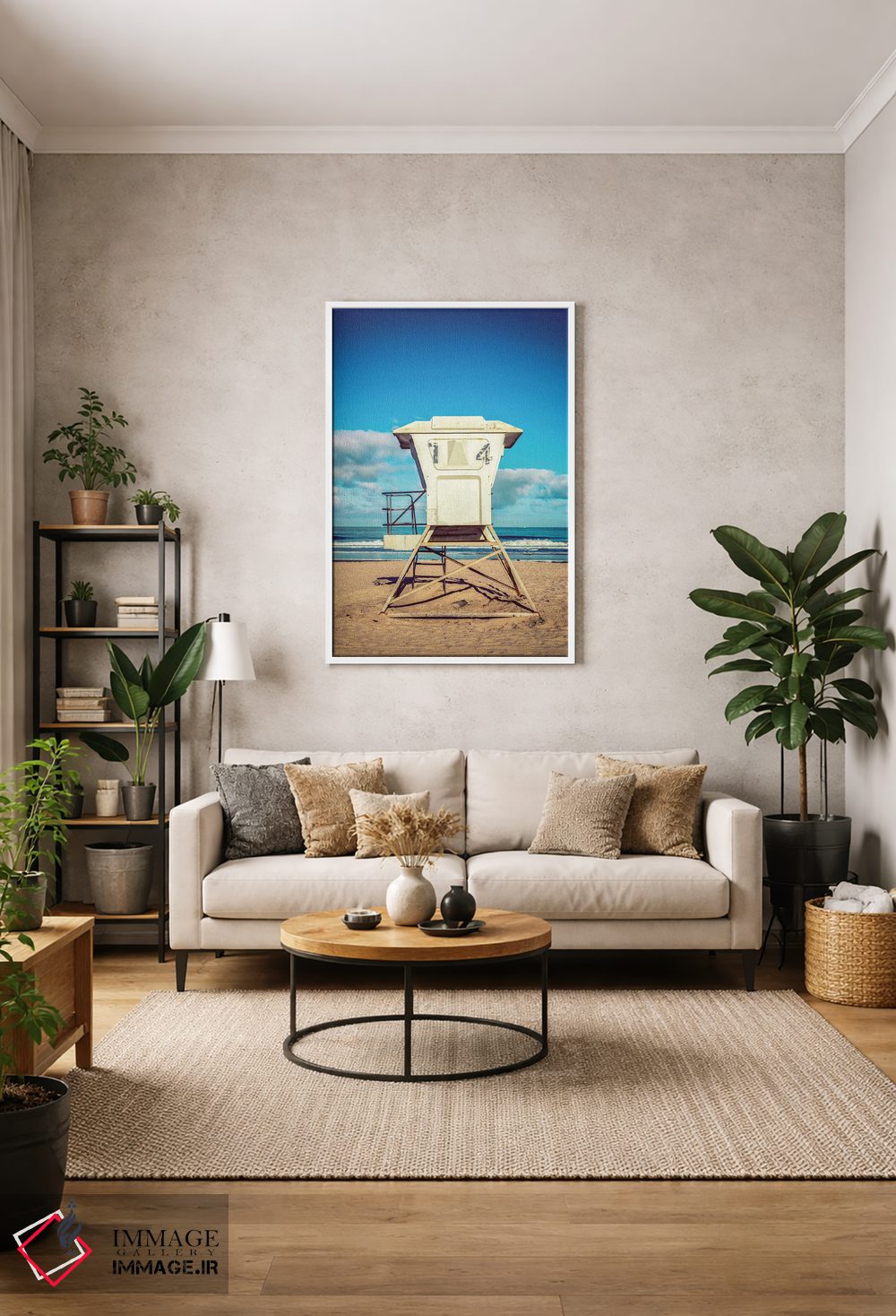 در این اثر، «San Diego، برج ۱۴ میشن بیچ، سن دیگو» اثرِ «جوزف اس. جیاکالونه» حس گالریوار را بیسروصدا وارد خانه میکند؛ برای کافهها و فضاهای عمومی کوچک پیشنهاد میشود. جزئیاتش نزدیکِ کار هم ارزش نگاه دارد.