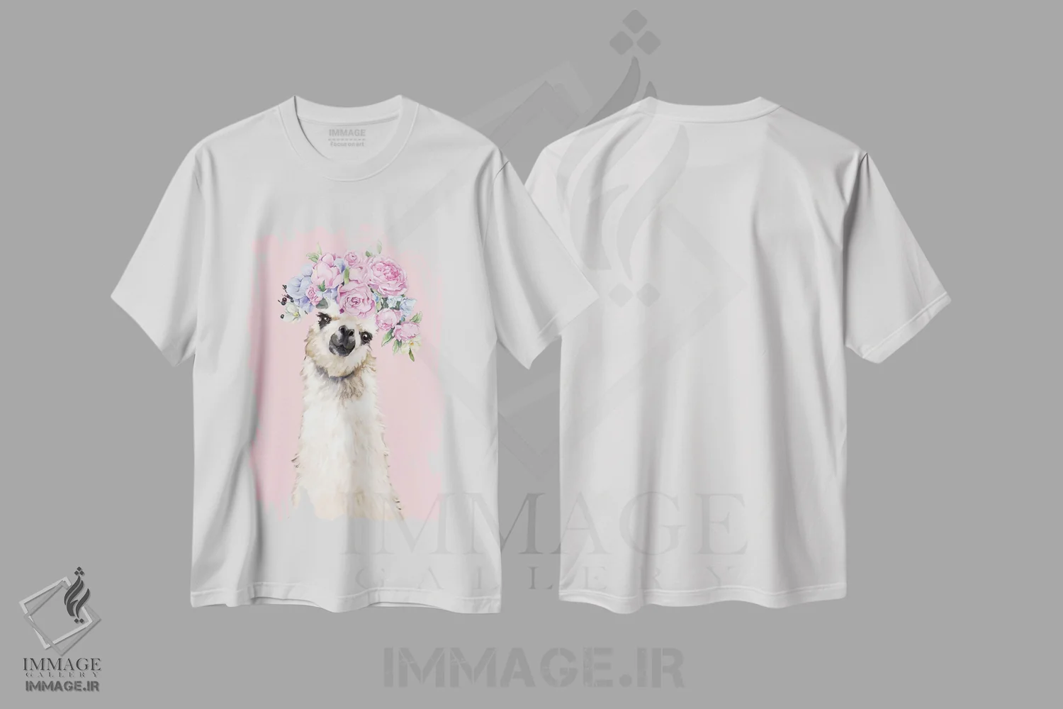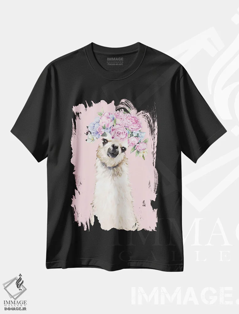 ظرافت روستیک با تی شرت «لاما و تاج گل صورتی»