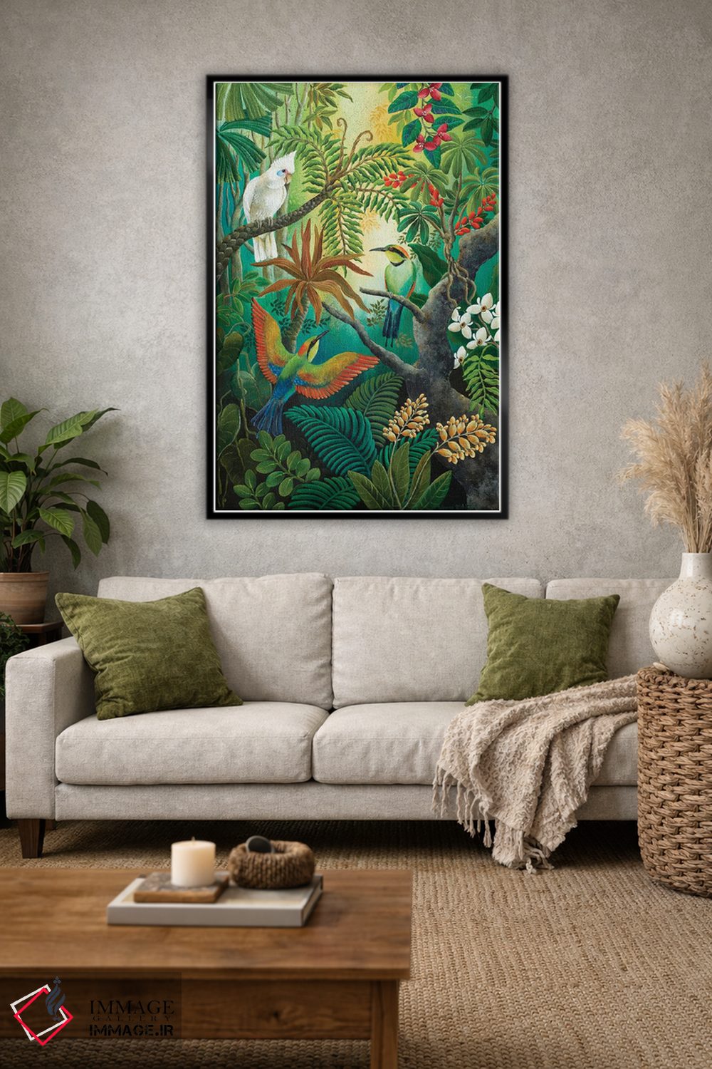 بوم گالری ایماژ نسخهی چیدماناتیوِ سطحبالا از یک اثر هنری است؛ روی کنواس سفیدِ یکدست و بدون اسید با اجرای چاپ هنری جیکلی (Giclée) برای آرتپرینتهای جدی با جوهرهای آرشیویِ حرفهای برای لایههای رنگی خواناتر؛ خروجی، یک «تابلو» است نه یک چاپ ساده. کلافکشی مرتب و یراق نصب استاندارد، تجربهی نصب را ساده میکند.