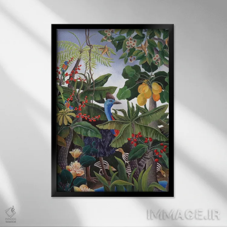 براساس پالت ترکیبی اثر، قاب تیک گرم (چوبی) پیشنهاد اول است و مشکی مات (فریم متوسط) مکمل.