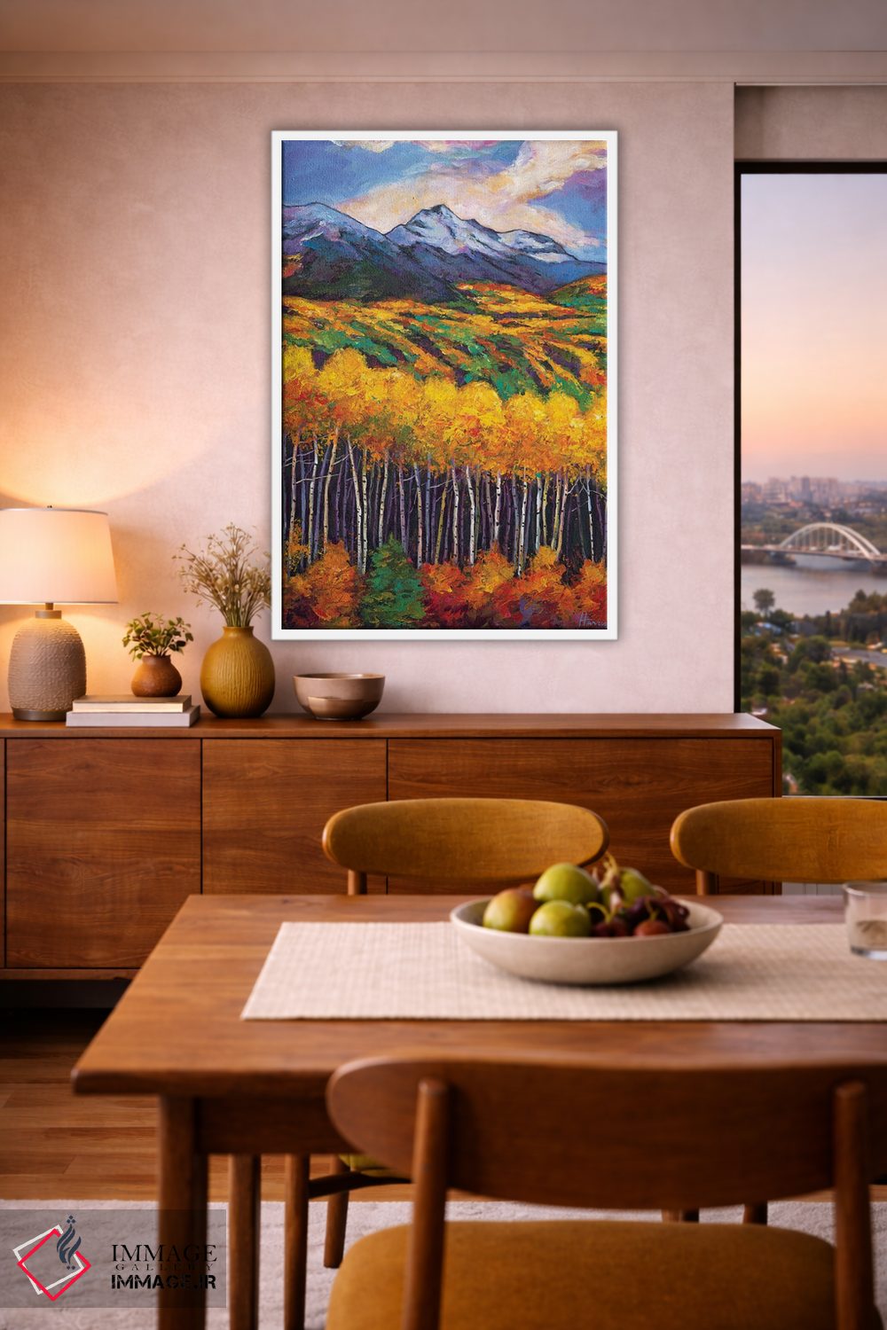 این اثر با عنوان «لبهٔ آسپن» اثرِ «جاناتان هریس» فضا را نرمتر و مهماننوازتر میکند؛ برای فضاهای بوهمی انتخابی خوشسلیقه است. در کنار گیاهان آپارتمانی، هماهنگتر هم میشود.