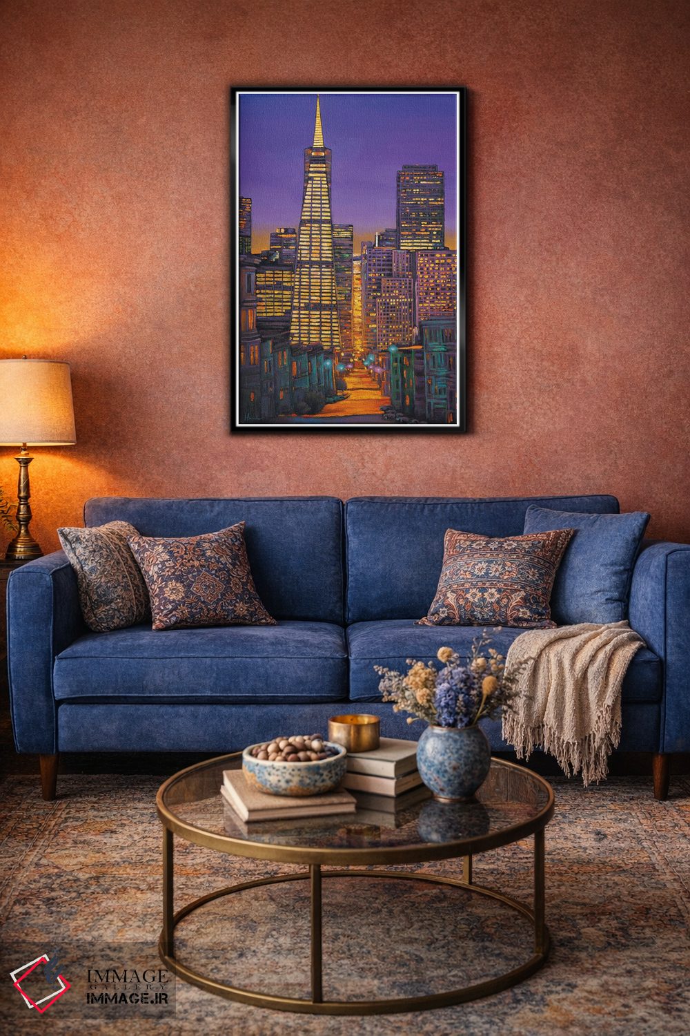 براساس پالت ترکیبی اثر، قاب تیک گرم (چوبی) پیشنهاد اول است و مشکی مات (فریم متوسط) مکمل. برای سفارشهای پروژهای با ابعاد و قابهای اختصاصی با ایماژ در تماس باشید.