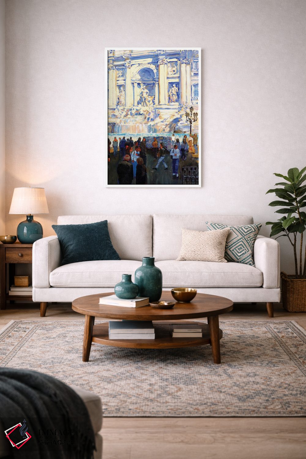 «فواره تروی (رم)» اثرِ «جان هاسکینز» با حالوهوای دکور معاصر و موضوعِ این اثر، برای نشیمنهای امروزی و چیدمانهای ساده انتخابی دقیق است.