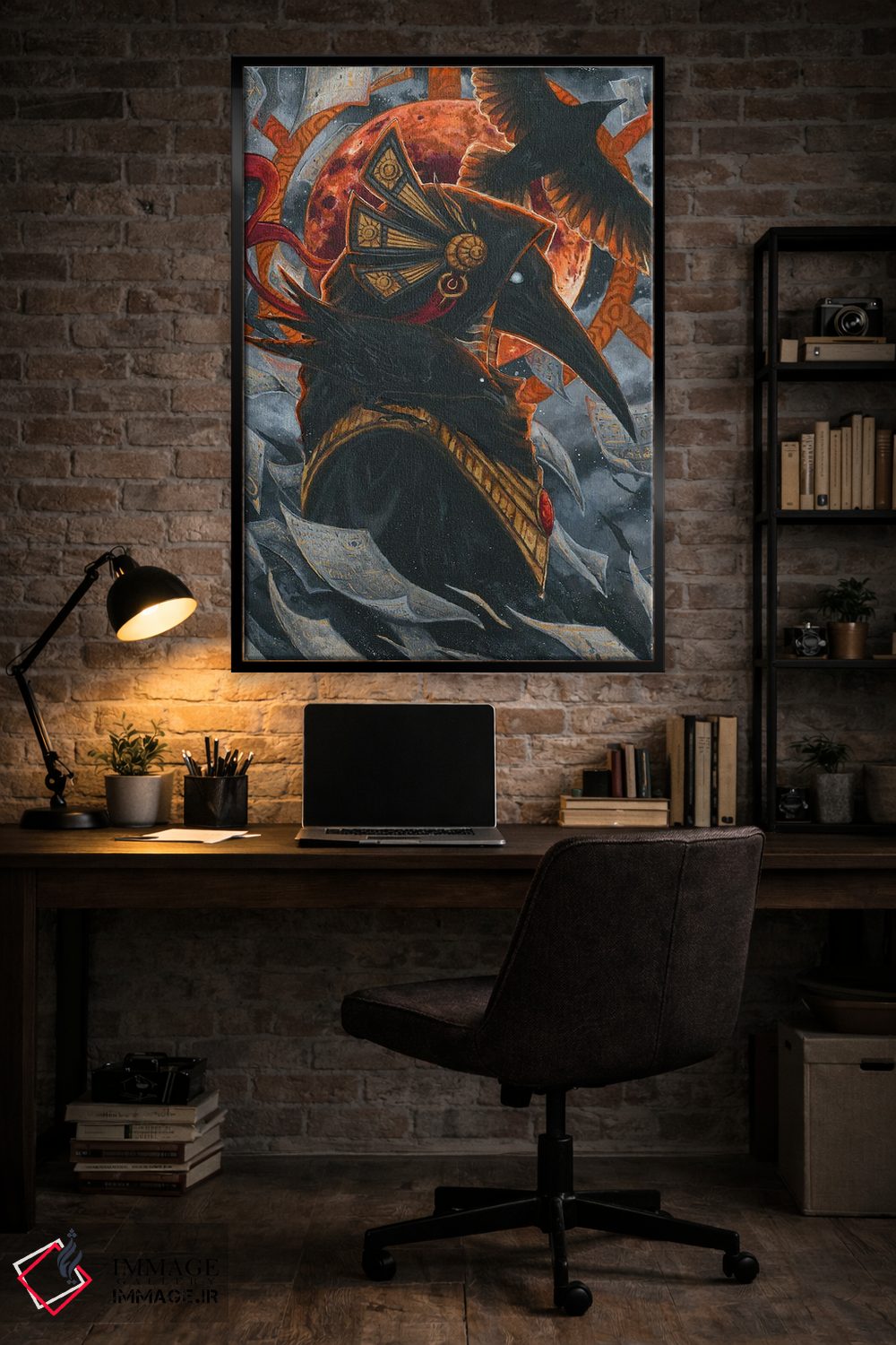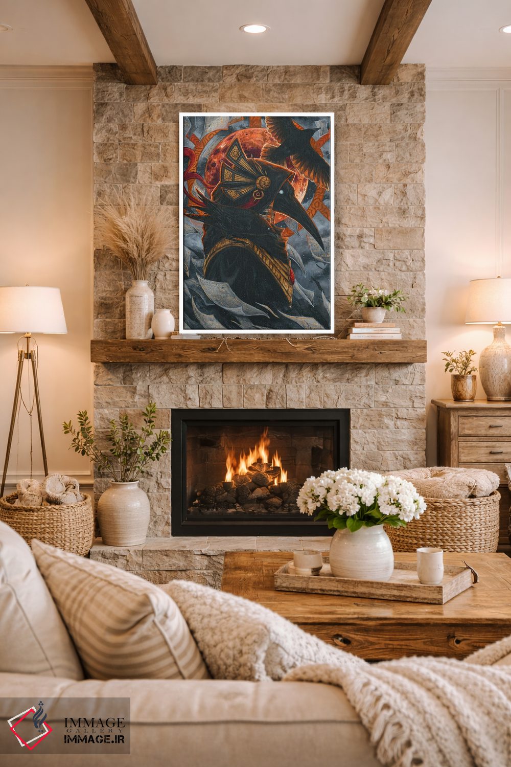 «تحوت و کلاغها (اسطوره مصر)» اثرِ «جونّا هیتینن» از آن کارهاییست که به دیوار، انرژیِ نرم و زنده میدهد؛ برای خانههایی با چوب و پارچههای گرم انتخاب خوبیست. هم فضا را گرم میکند، هم شلوغش نمیکند.