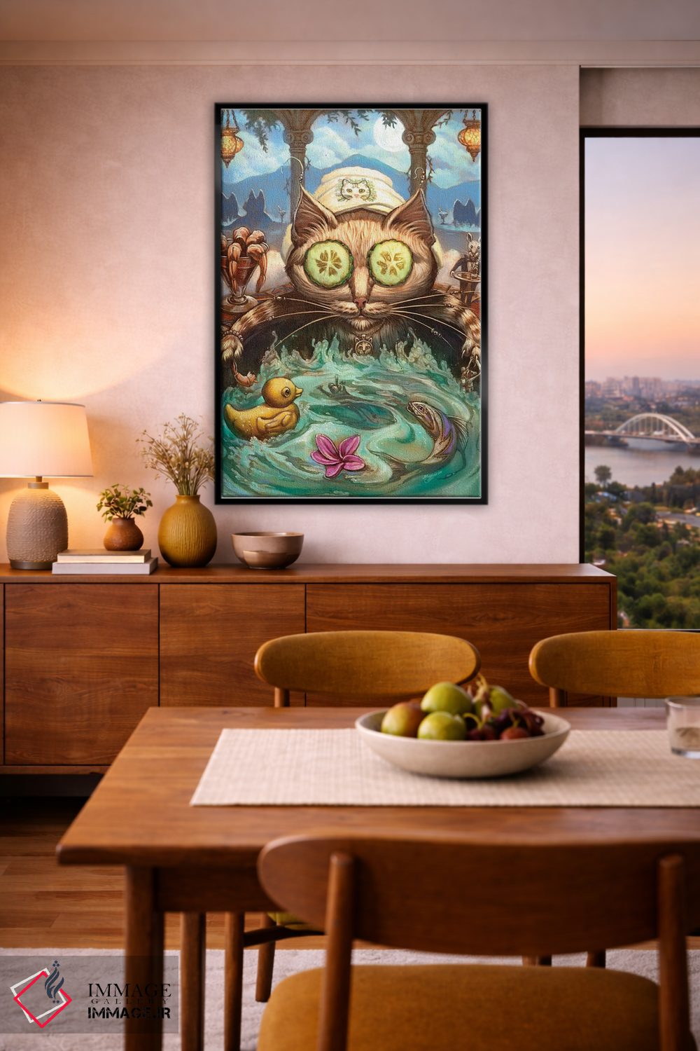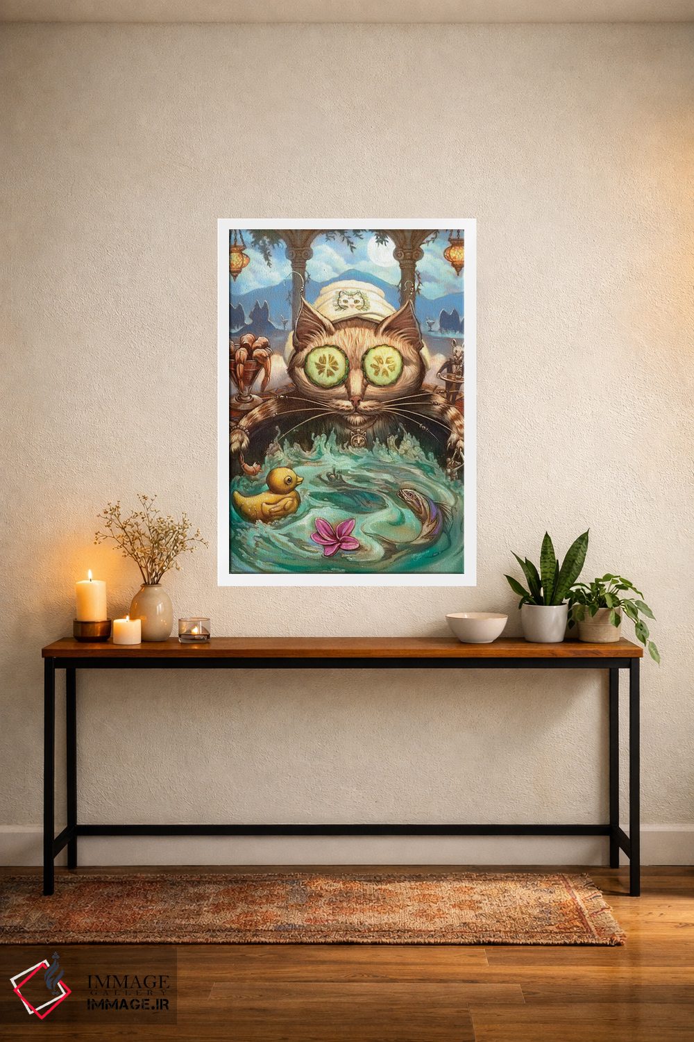 تابلو دکوراتیو گربه نازپرورده اثر جف هینی - نمای روبه‌رو روی دیوار