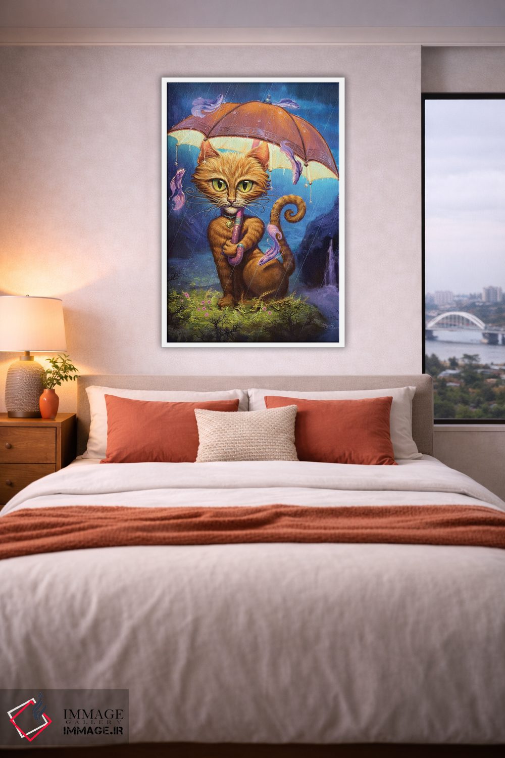 براساس پالت ترکیبی اثر، قاب تیک گرم (چوبی) پیشنهاد اول است و مشکی مات (فریم متوسط) مکمل. برای سفارشهای پروژهای با ابعاد و قابهای اختصاصی با ایماژ در تماس باشید.