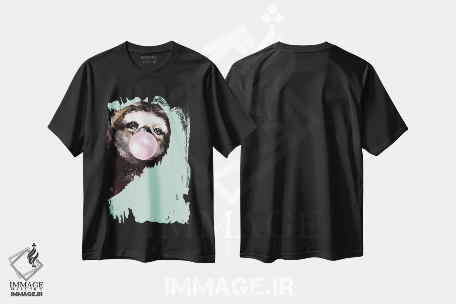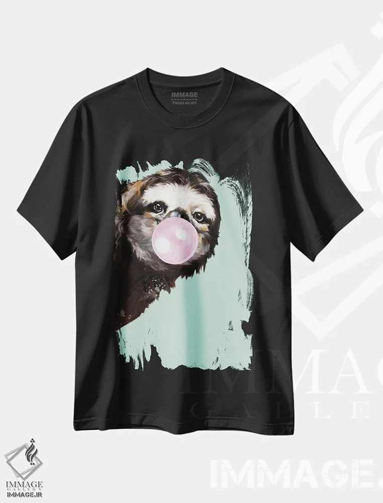 تیشرت طرح دار تنبل شیطان که آدامس بادکنکی در رنگ سبز فوت می کند اثر بگ نوز ورک