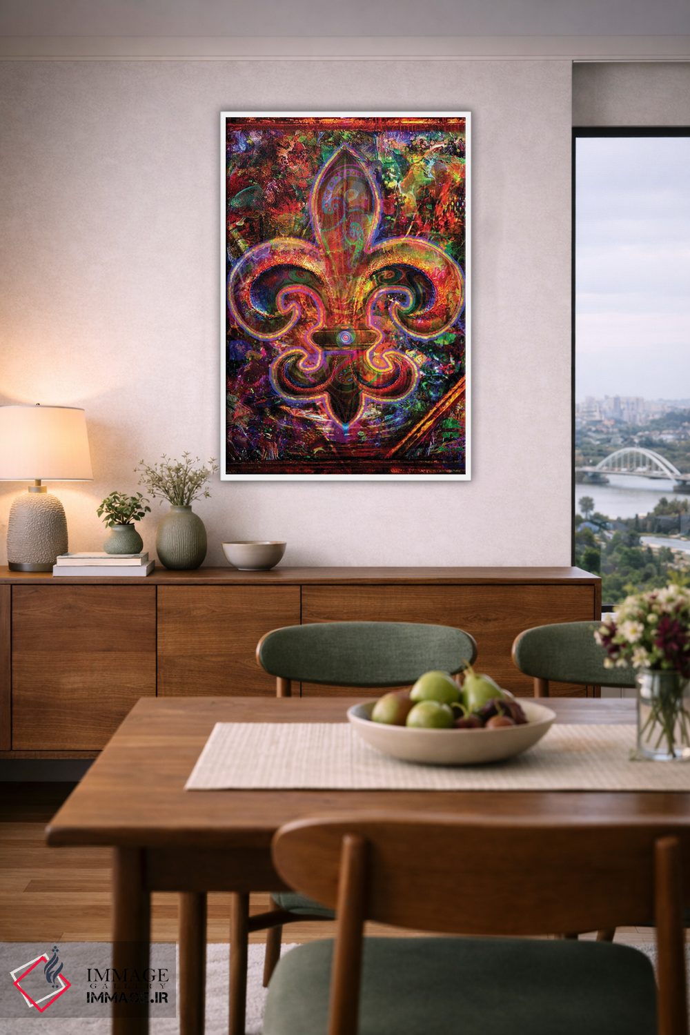 «فِلِردِلیس (نماد گل زنبق فرانسه)» اثرِ «جامبی (نام هنری/لقب)» با حالوهوای دکوراسیون جایگزین و موضوعِ این اثر، برای فضاهای خلاقانه و متفاوت انتخابی جسورانه اما مرتب است.