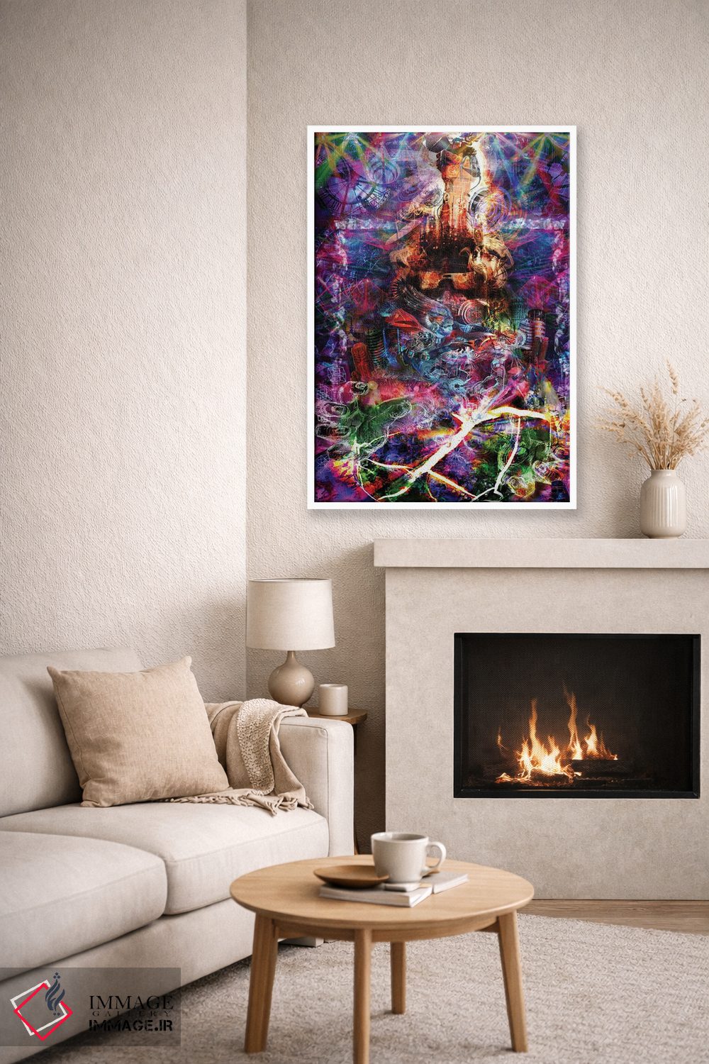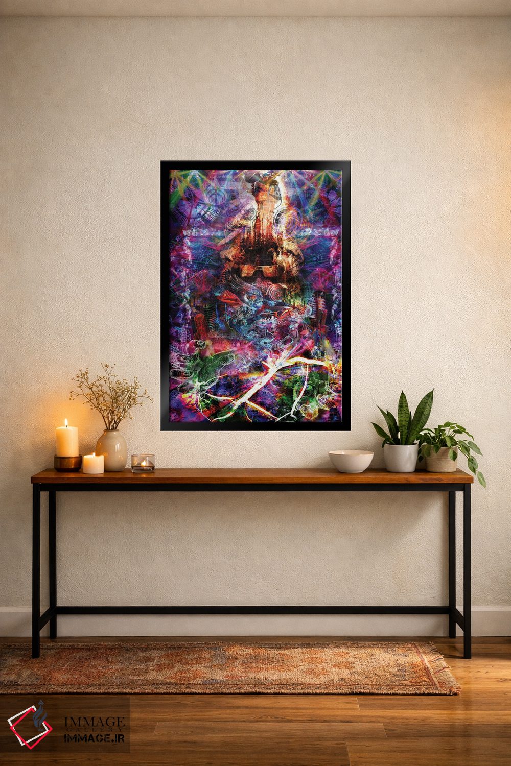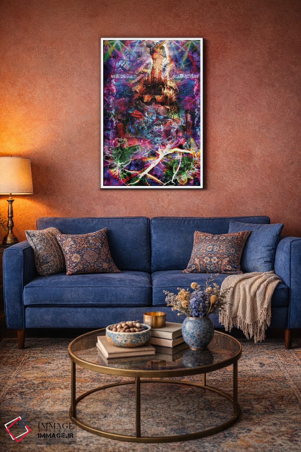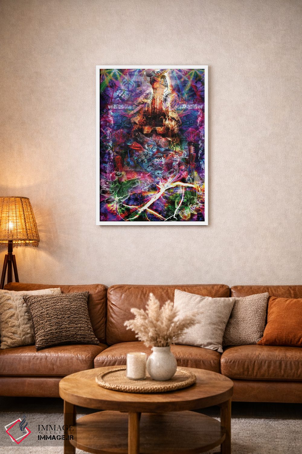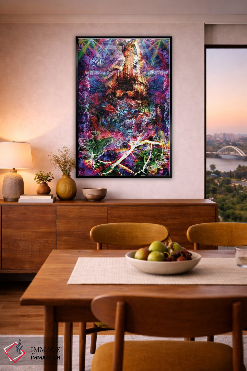 اگر دکور شما متفاوت و تجربهگراست، «خارج از چهارچوب» اثرِ «جامبی (نام هنری/لقب)» با موضوعِ این اثر در لحن جایگزین انتخاب خوبی است.
