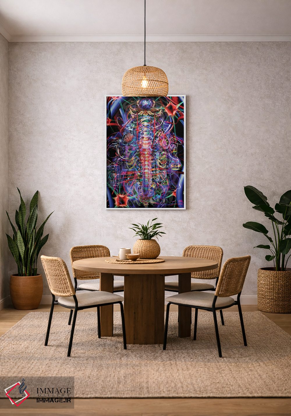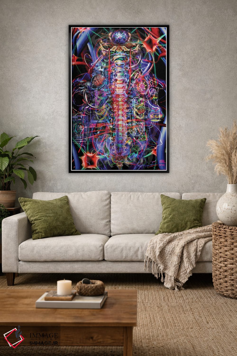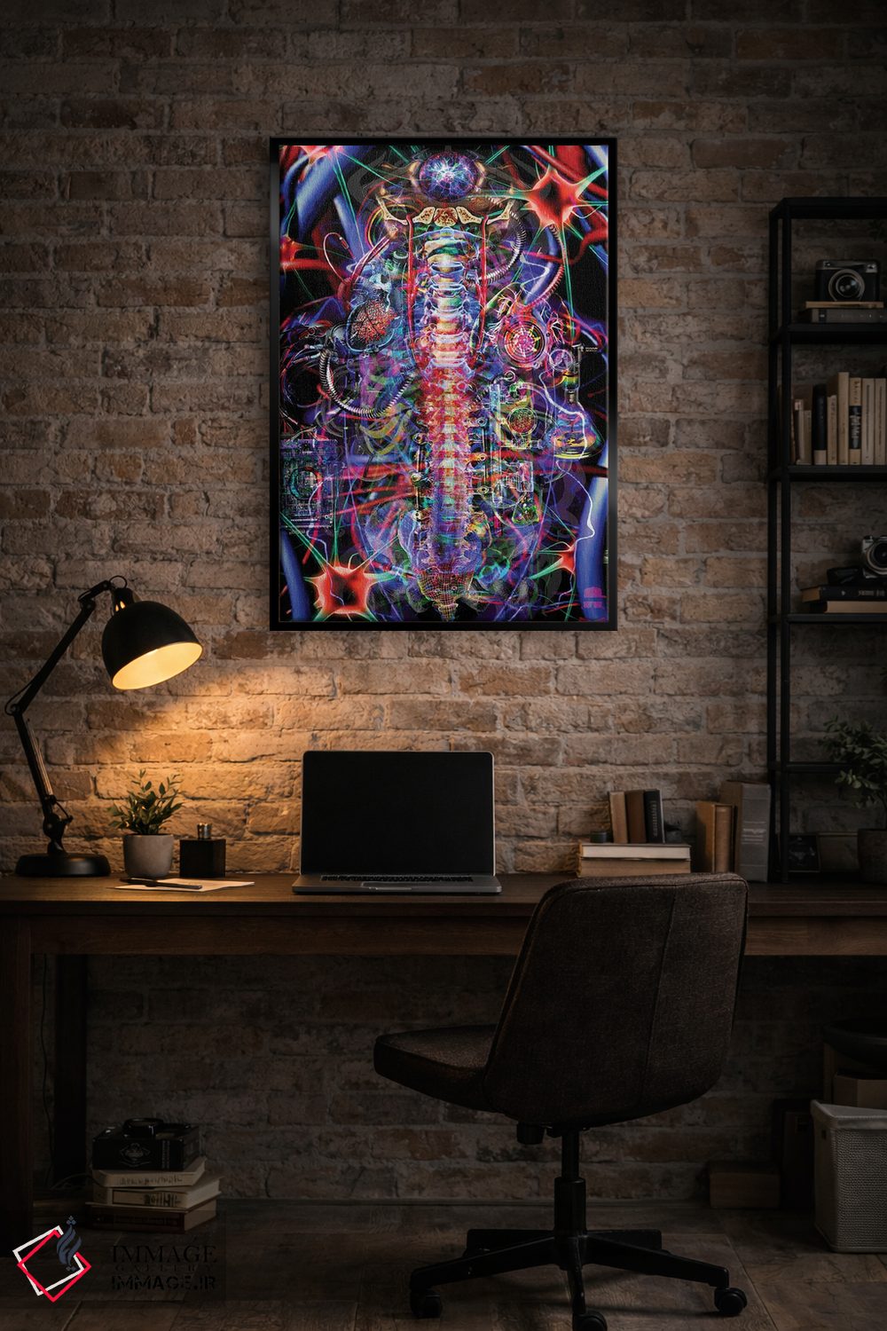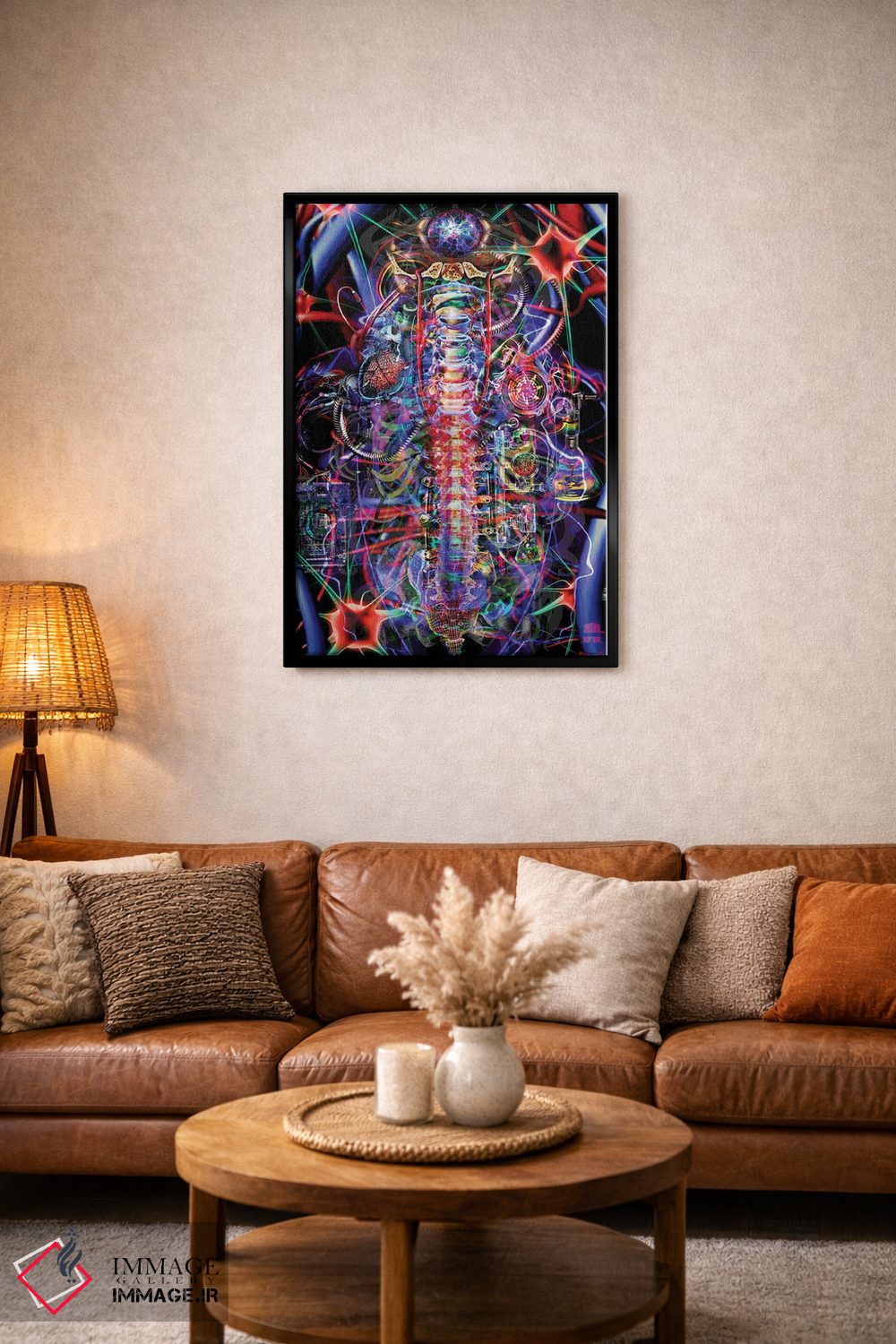 «ستون فقرات» اثرِ «جامبی (نام هنری/لقب)» با حالوهوای دکوراسیون جایگزین و موضوعِ این اثر، برای فضاهای خلاقانه و متفاوت انتخابی جسورانه اما مرتب است.