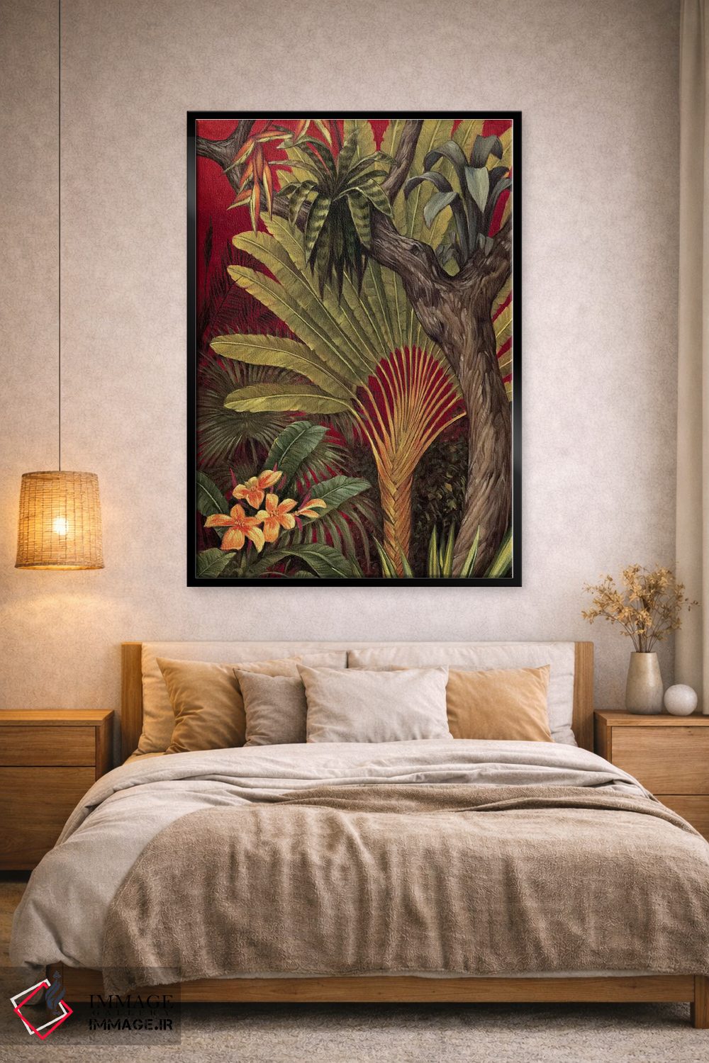 براساس پالت گرم اثر، قاب تیک گرم (چوبی) پیشنهاد اول است و مشکی مات (فریم متوسط) مکمل. برای سفارشهای پروژهای با ابعاد و قابهای اختصاصی با ایماژ در تماس باشید.