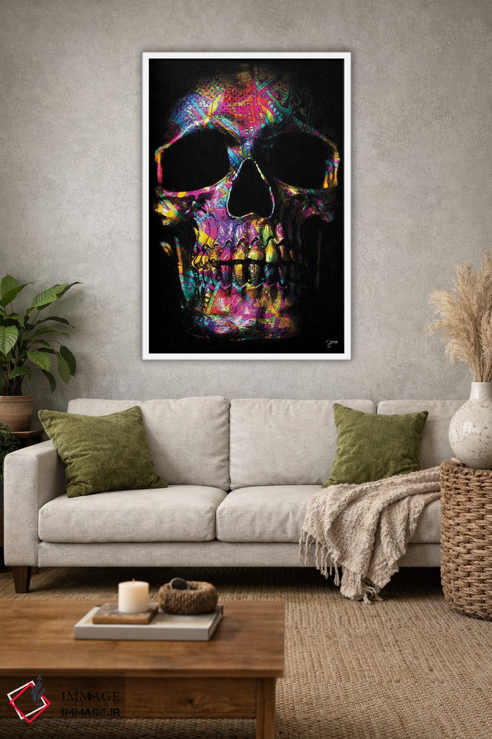 تابلو دکوراتیو جمجمه پولی صورتی اثر جسی جانسون